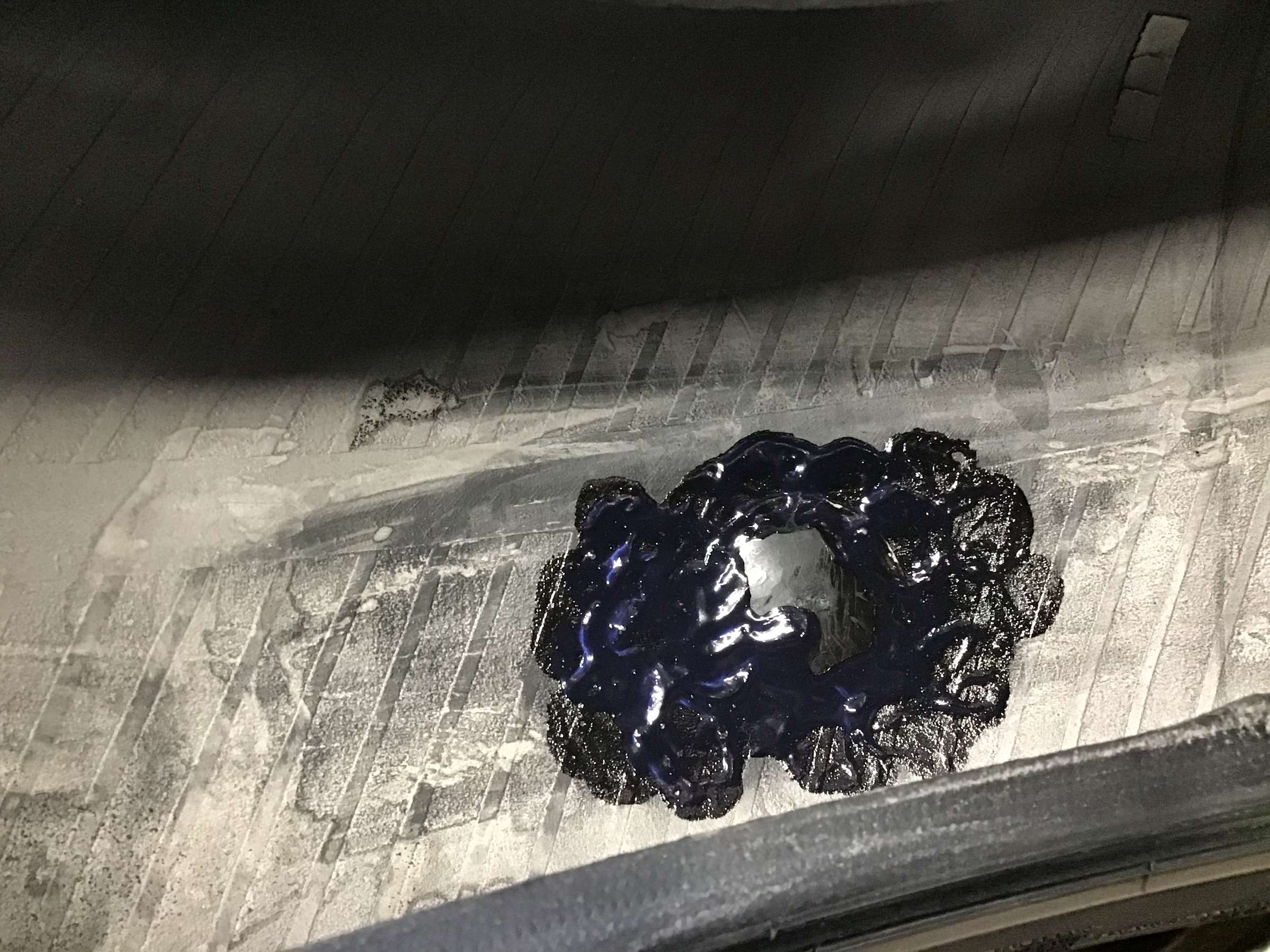 こんな色していますが、しっかり乾くとタイヤゴムと同じように黒く変化します。