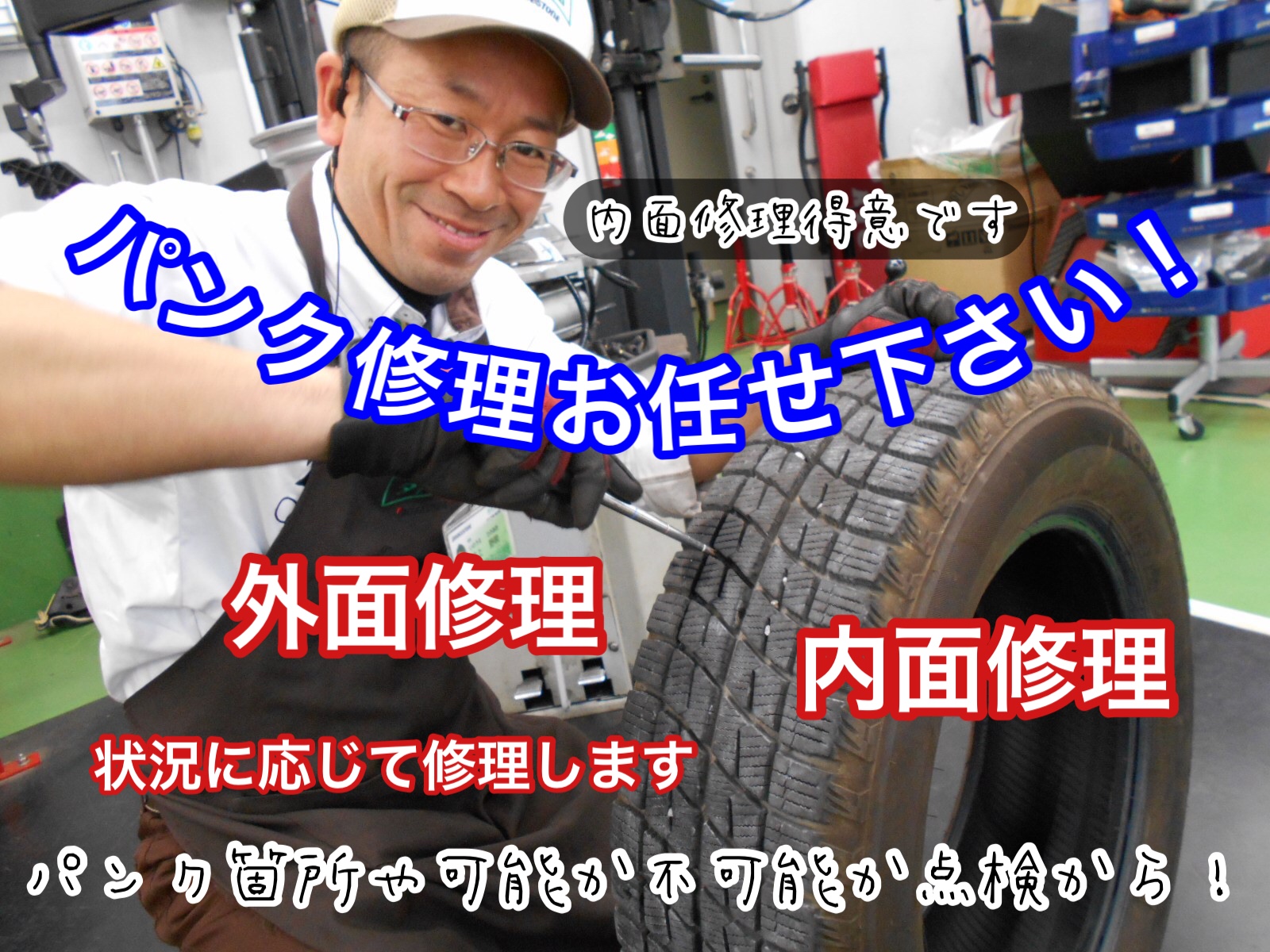 ①内面修理・・・タイヤをホイールからバラして内側からしっかり修理。