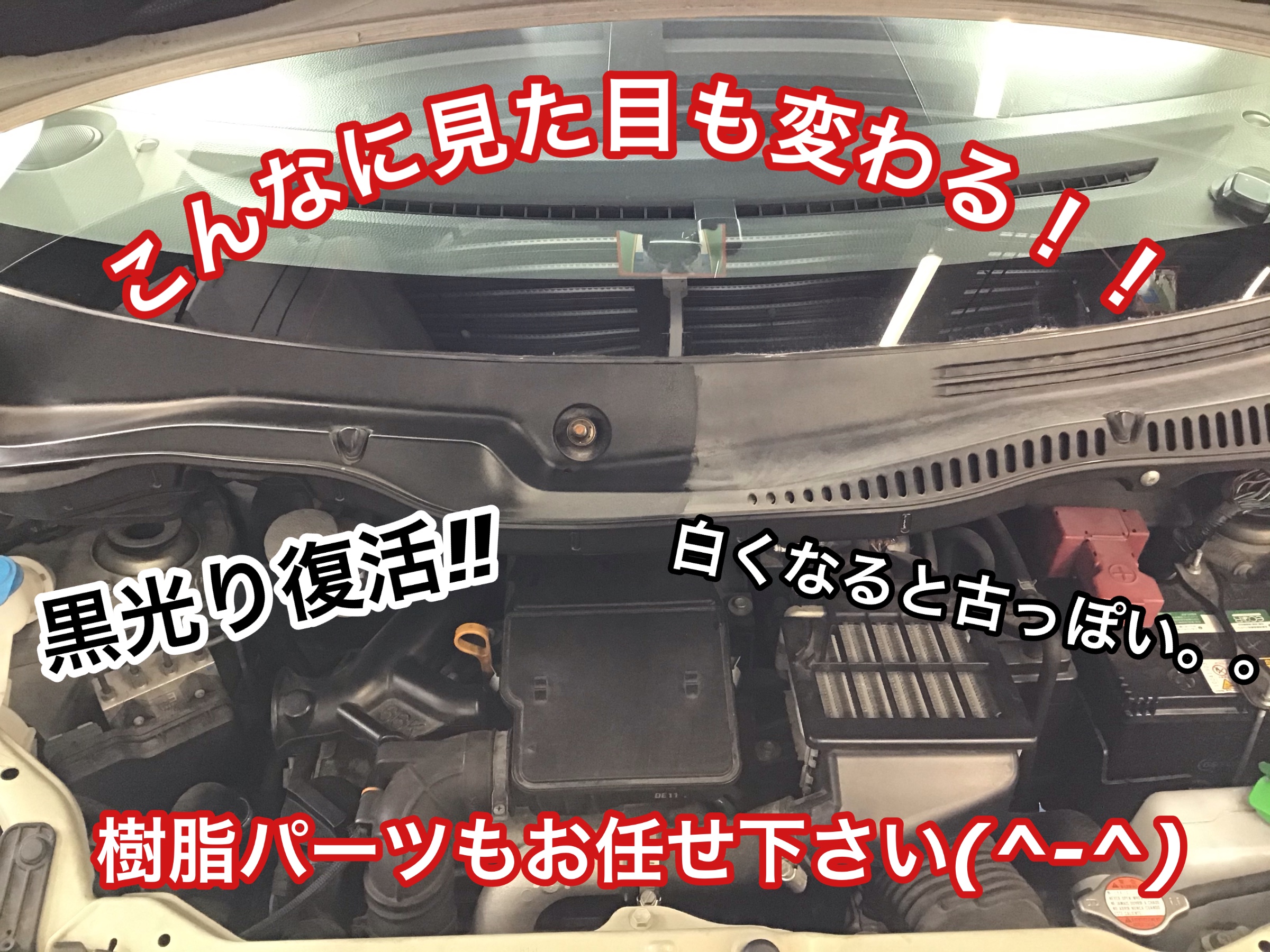 せっかく洗車をして車を大事にしていても、元々黒い部分が白くなってくると車が古ぼけて見えたりしてしまいます。ぜひ一度お試ししてみませんか??