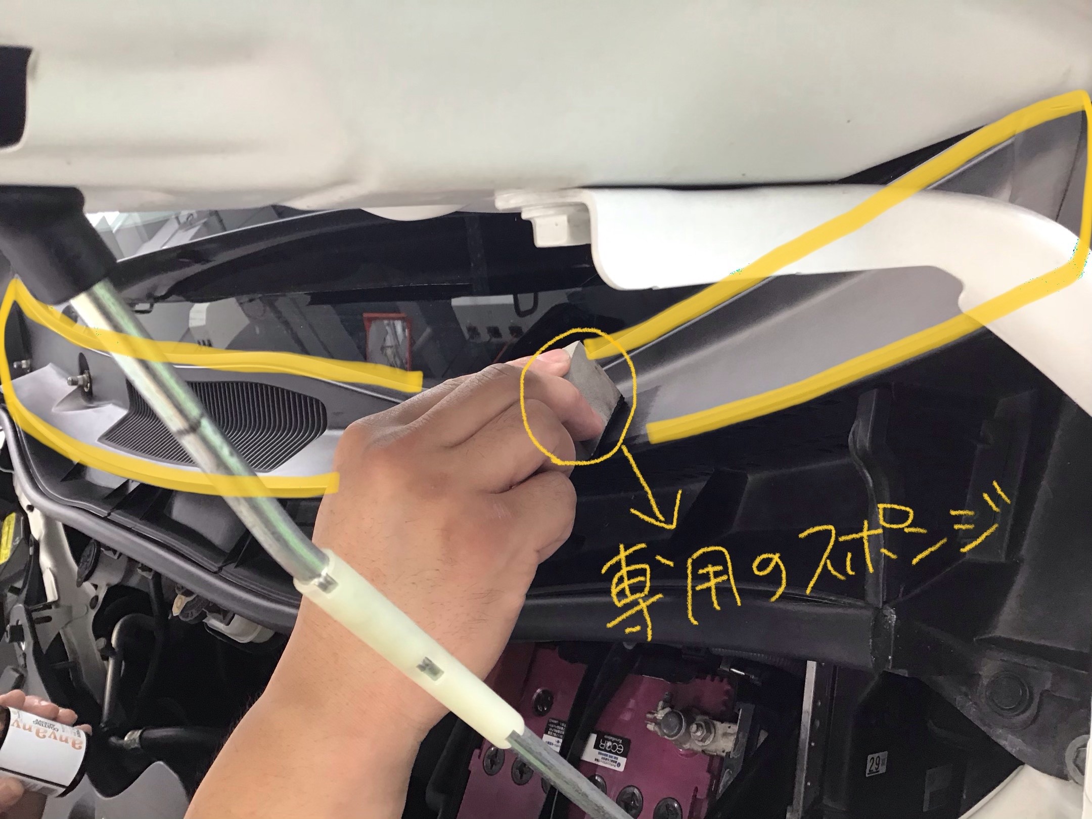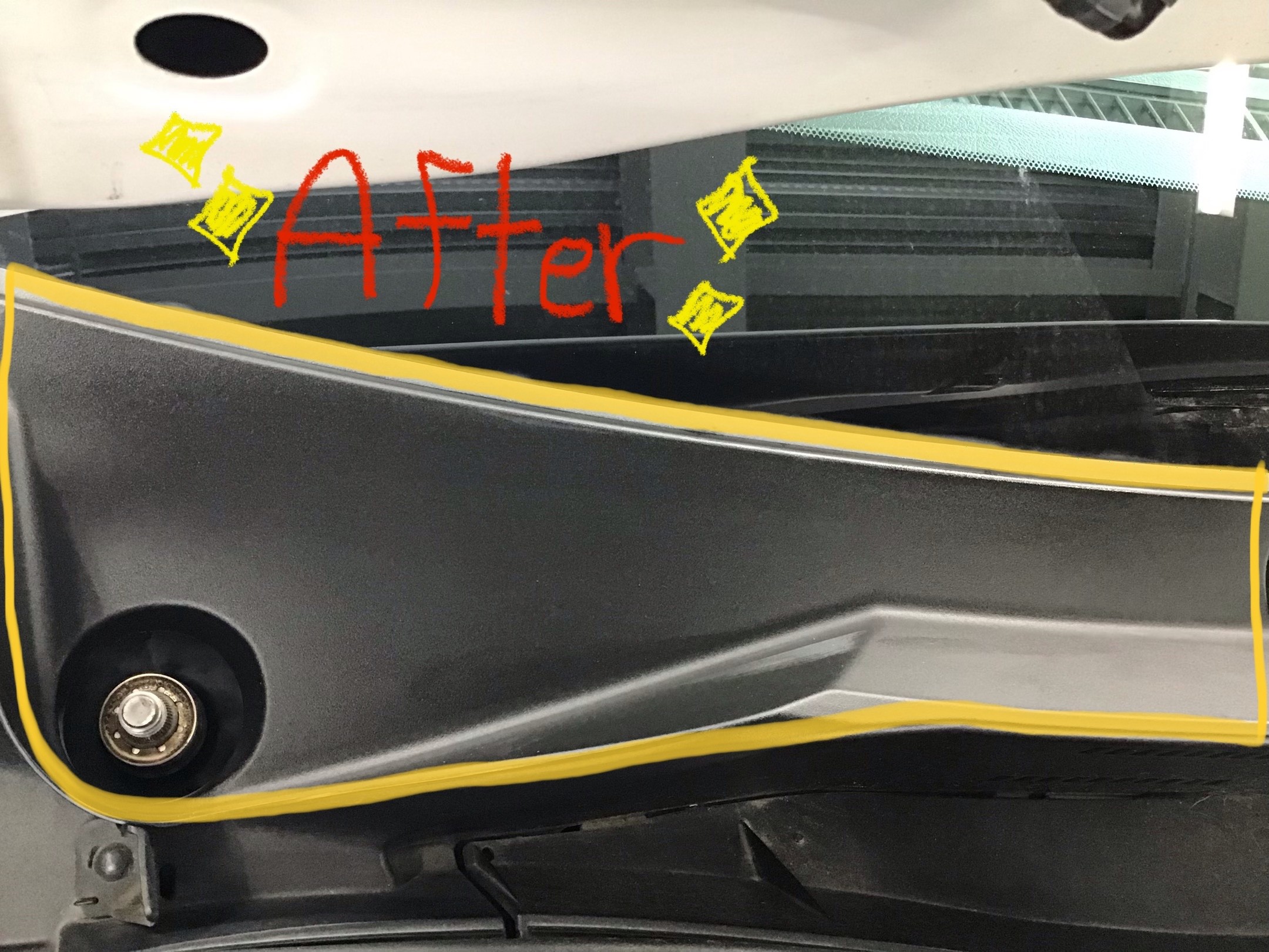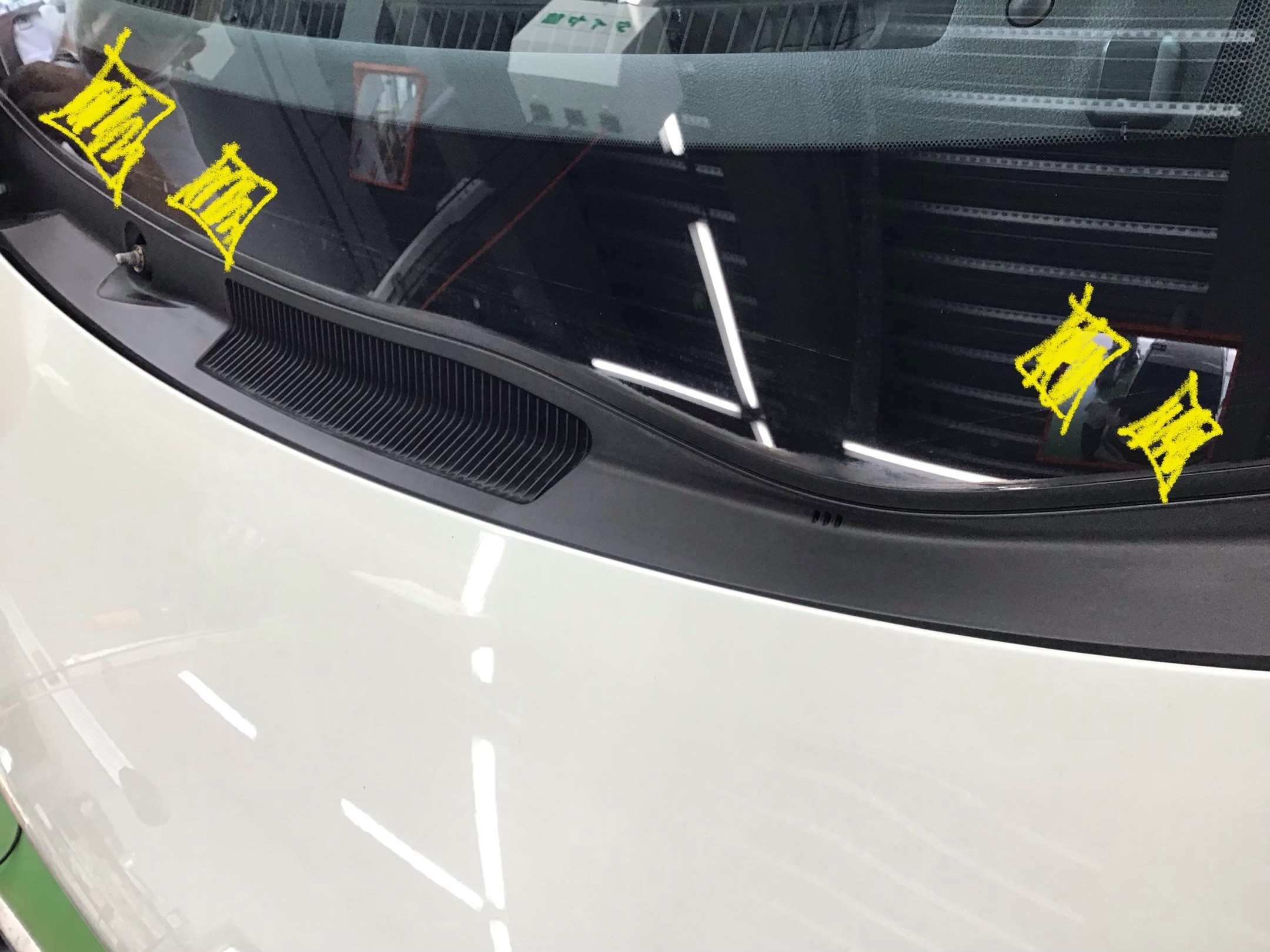 フロント ワイパーが取り付く部分の樹脂パーツ