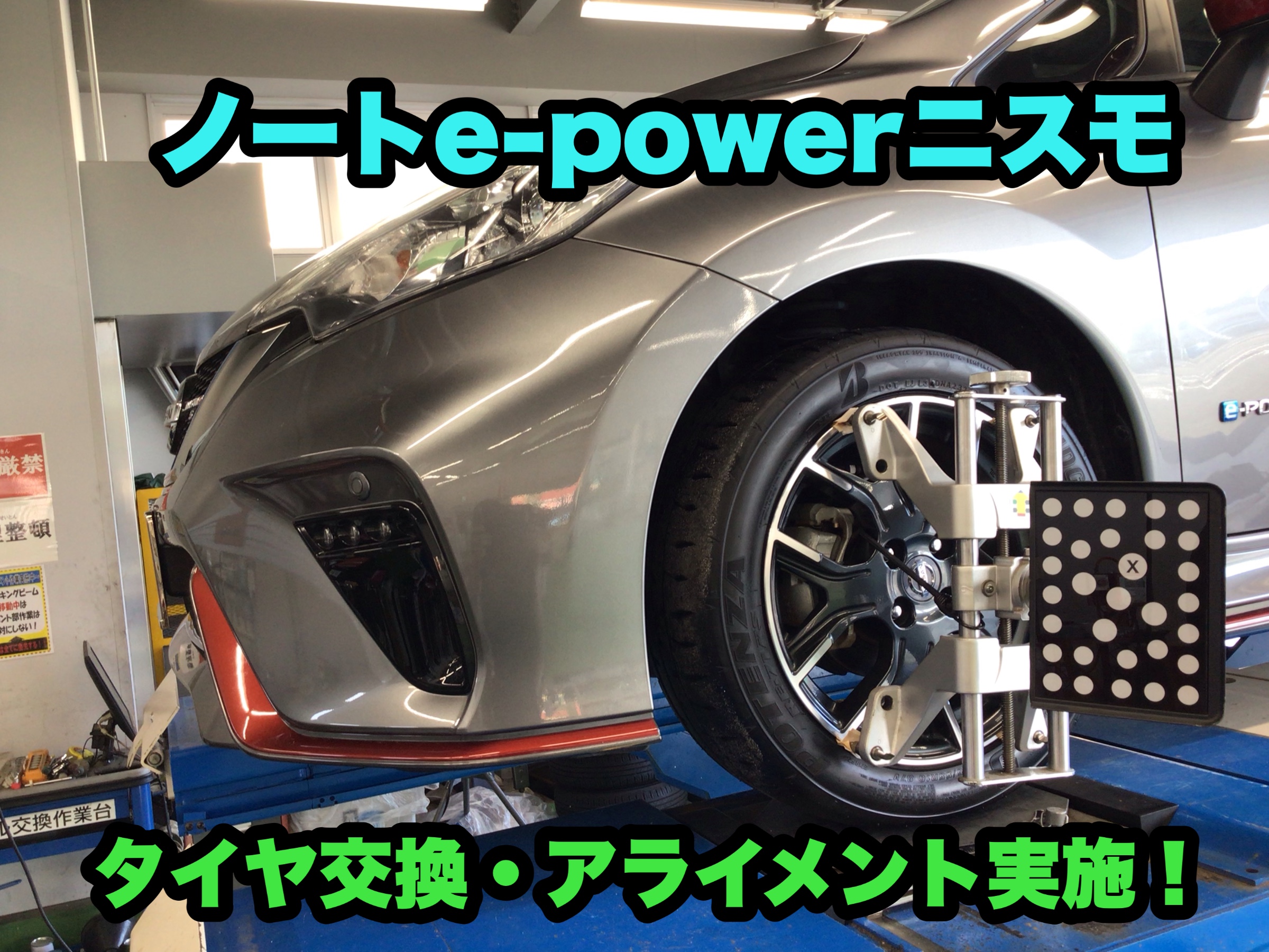 ノートe-powerニスモのタイヤ交換とアライメントを承りました。