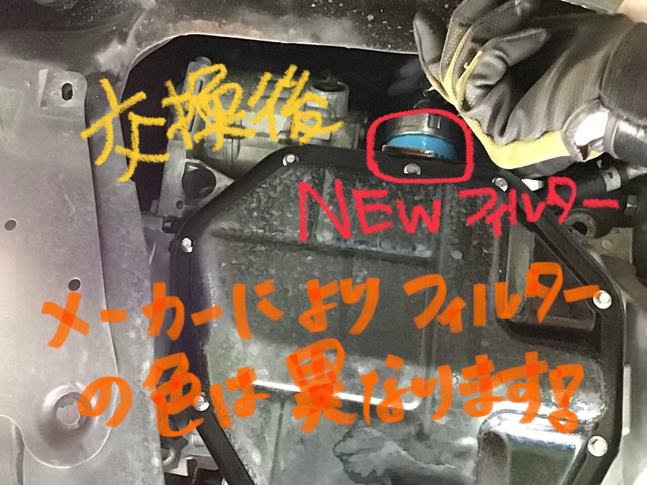 メーカーによって、フィルターの色は異なりますが、車種に適したフィルターをしっかり取り付けます。