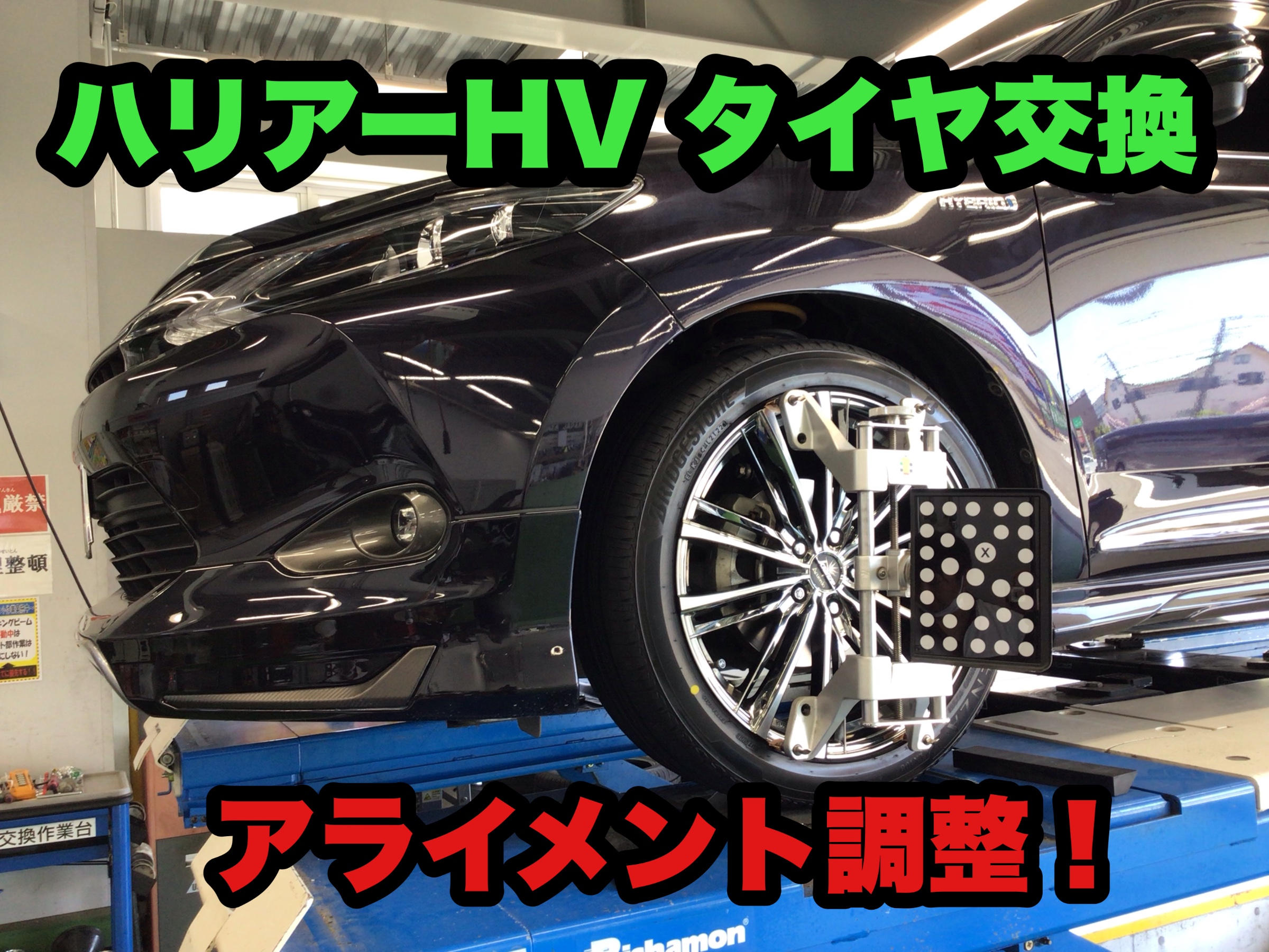 先日承りましたハリアーHVのタイヤ交換・アライメント調整のご案内です。