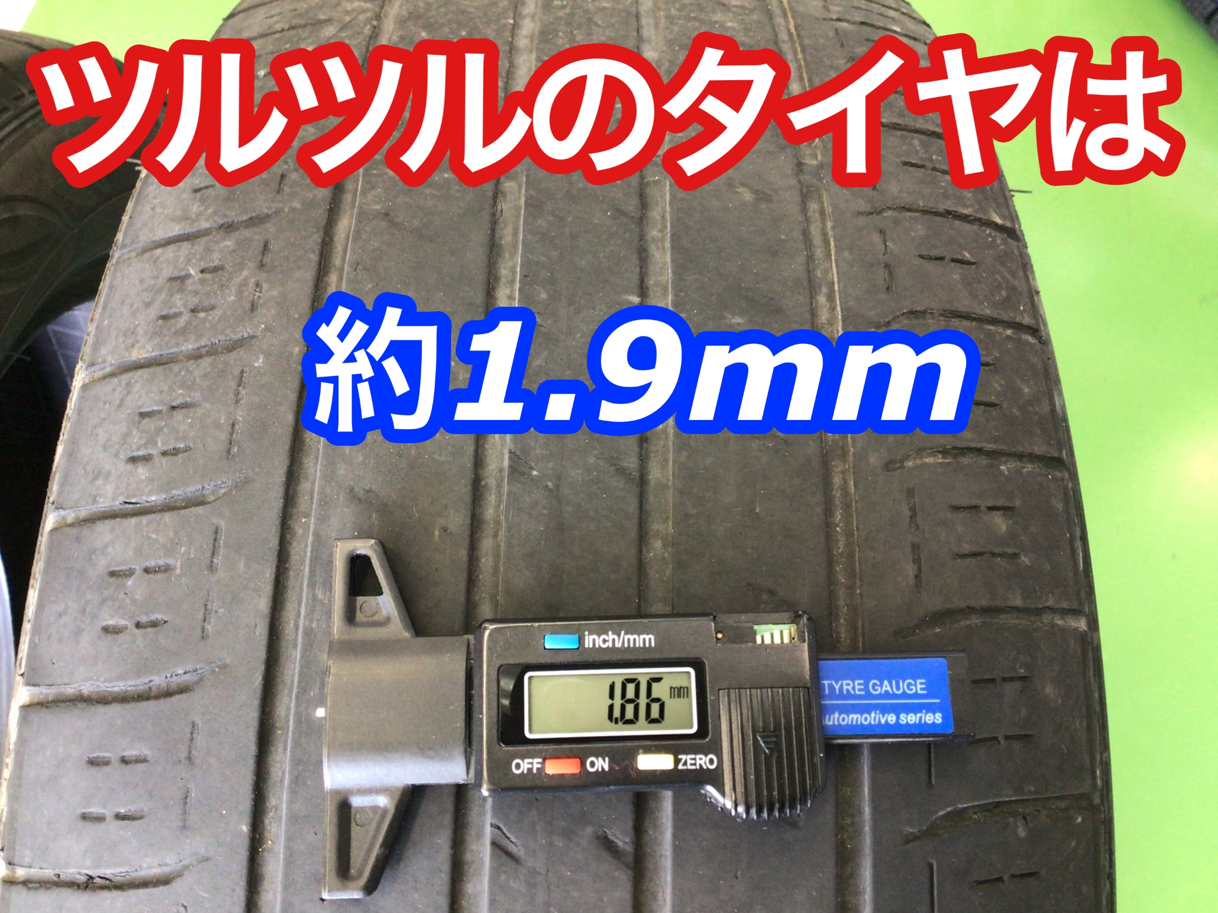 ちなみに、車検に通る残溝は『1.6mm』が最低ですが、ツルツルになるまで使っていると雨の日のブレーキ性能はもちろん!!晴れてる日のドライ性能も低下します。なるべく早めの交換で安全運転を!!