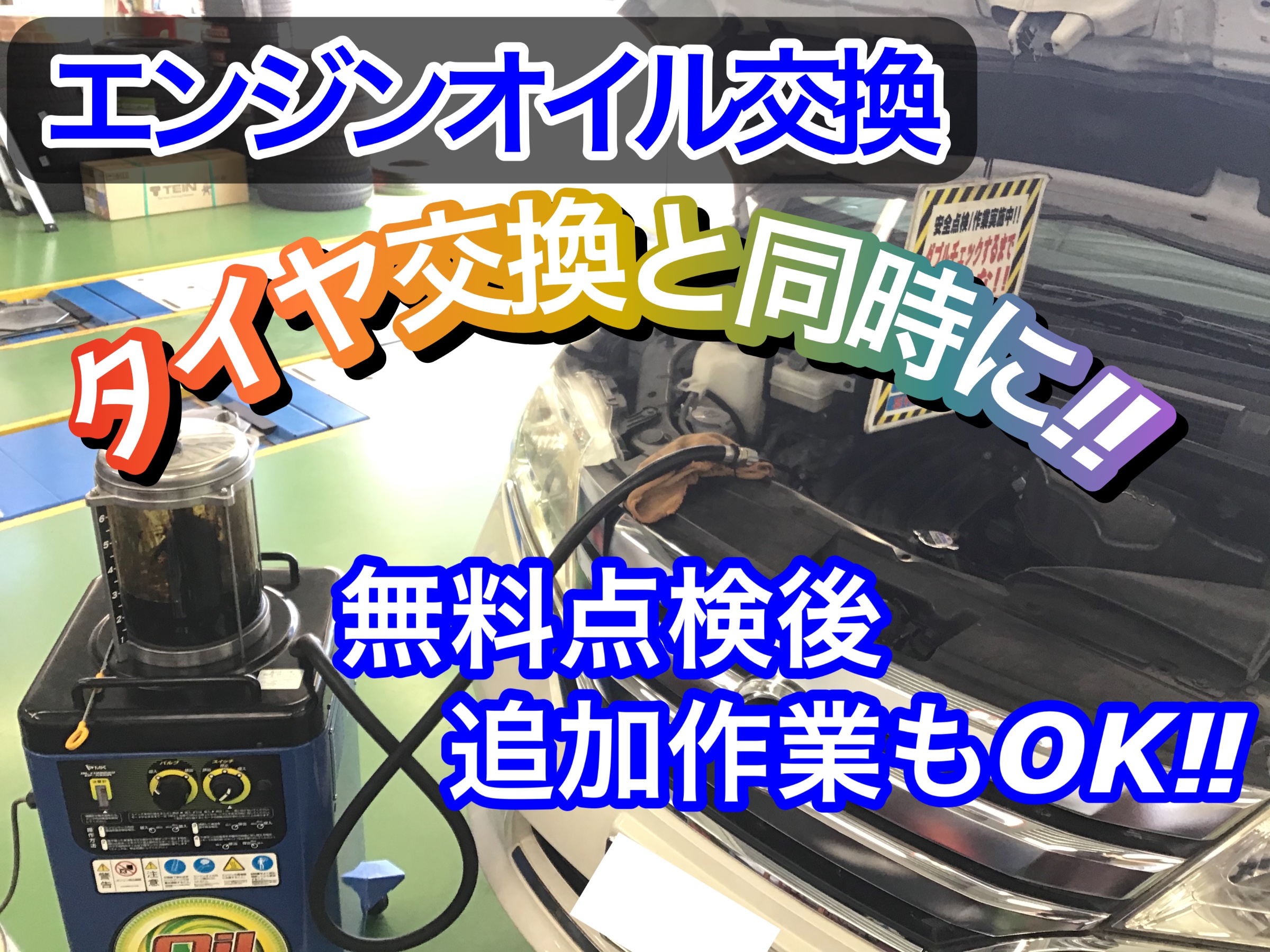 タイヤの点検からタイヤ交換、オイル交換、バッテリー交換など!