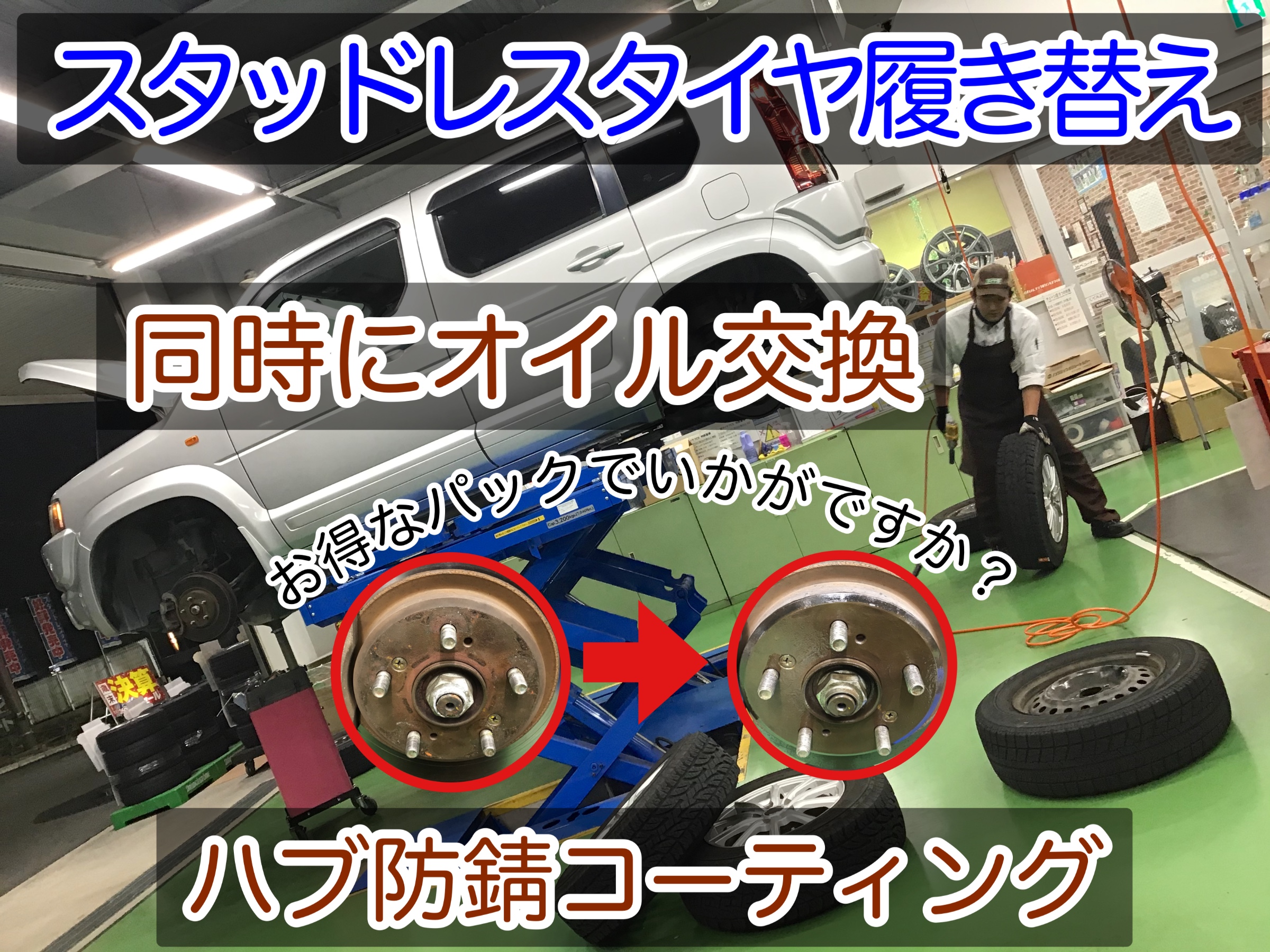 八潮・三郷・吉川・越谷・草加・松戸・タイヤ交換・脱着・スタッドレスタイヤ・エンジンオイル交換・バッテリー交換・ワイパー交換・エアコンフィルター交換・窒素ガス・空気圧点検・無料点検・無料見積もり・車検見積もり・防錆施工・ドライブレコーダー・ユピテル・コムテック・前後カメラ・360度カメラ・ワコーズ添加剤・ヘッドライトコーティング・車内抗菌除菌