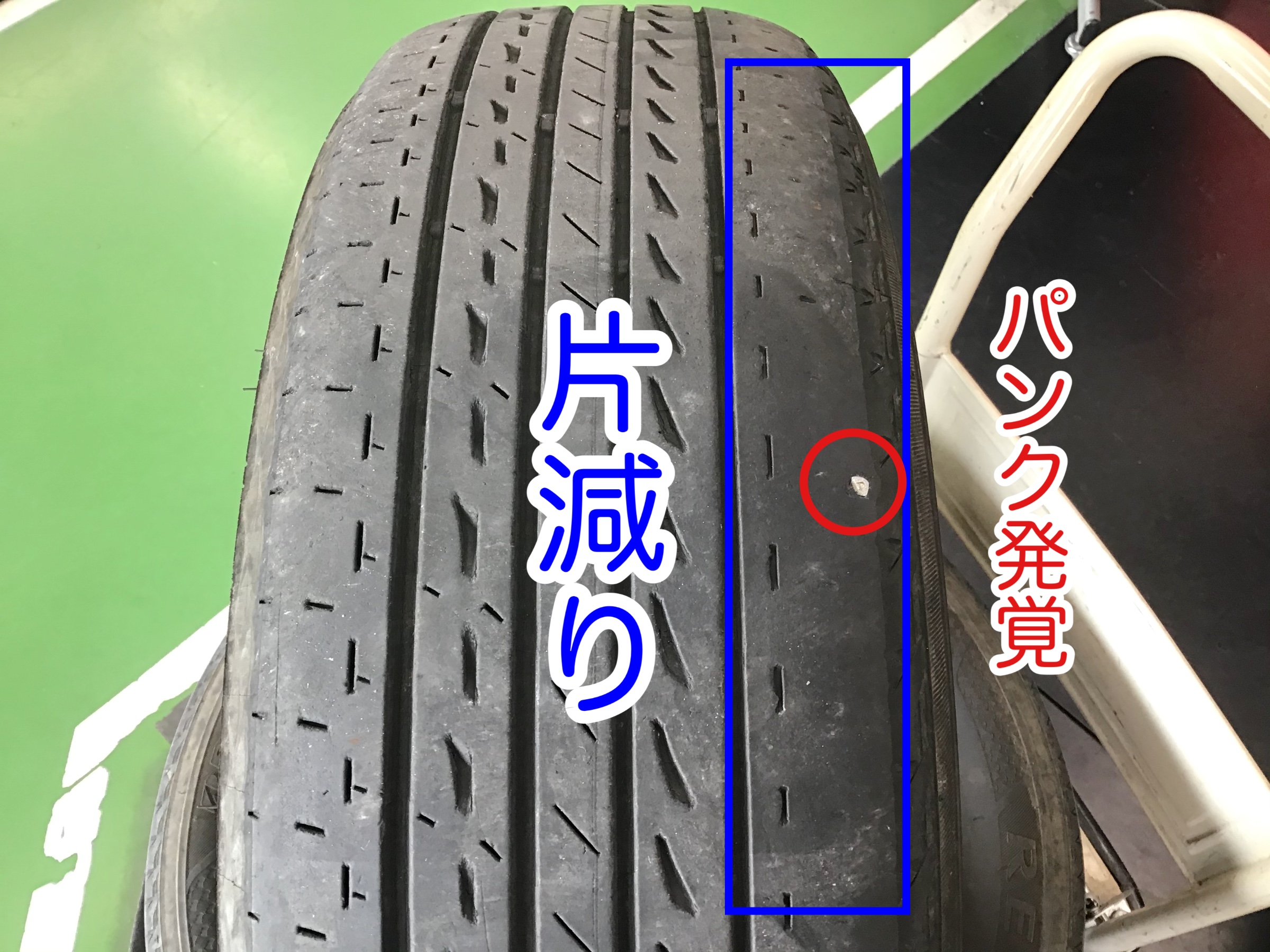 なんとパンクしていたようで、空気圧が低下していました(>_<)