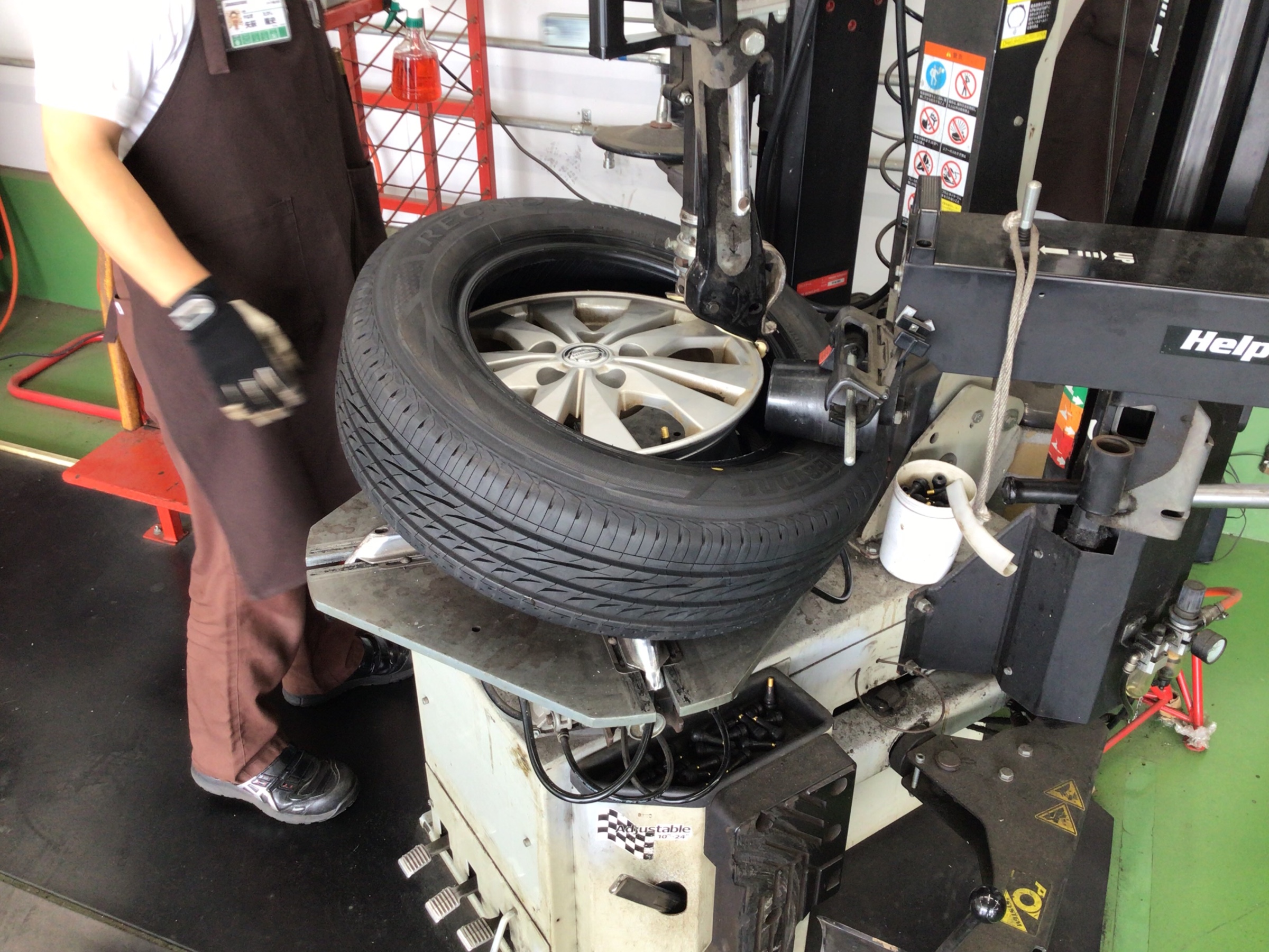それでは、作業に入ります!まずはタイヤ交換から! プロのスタッフが、愛情込めて丁寧に作業します!
