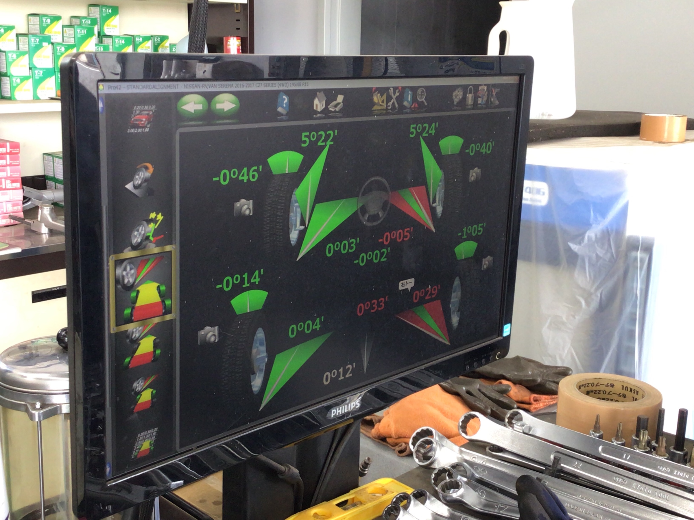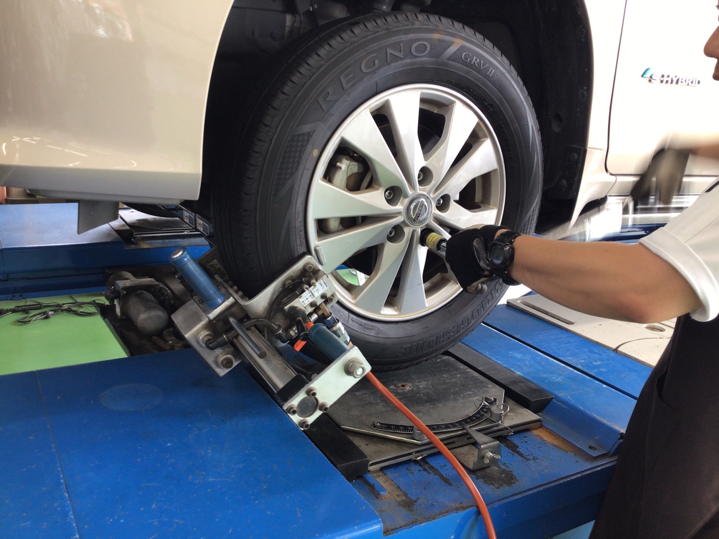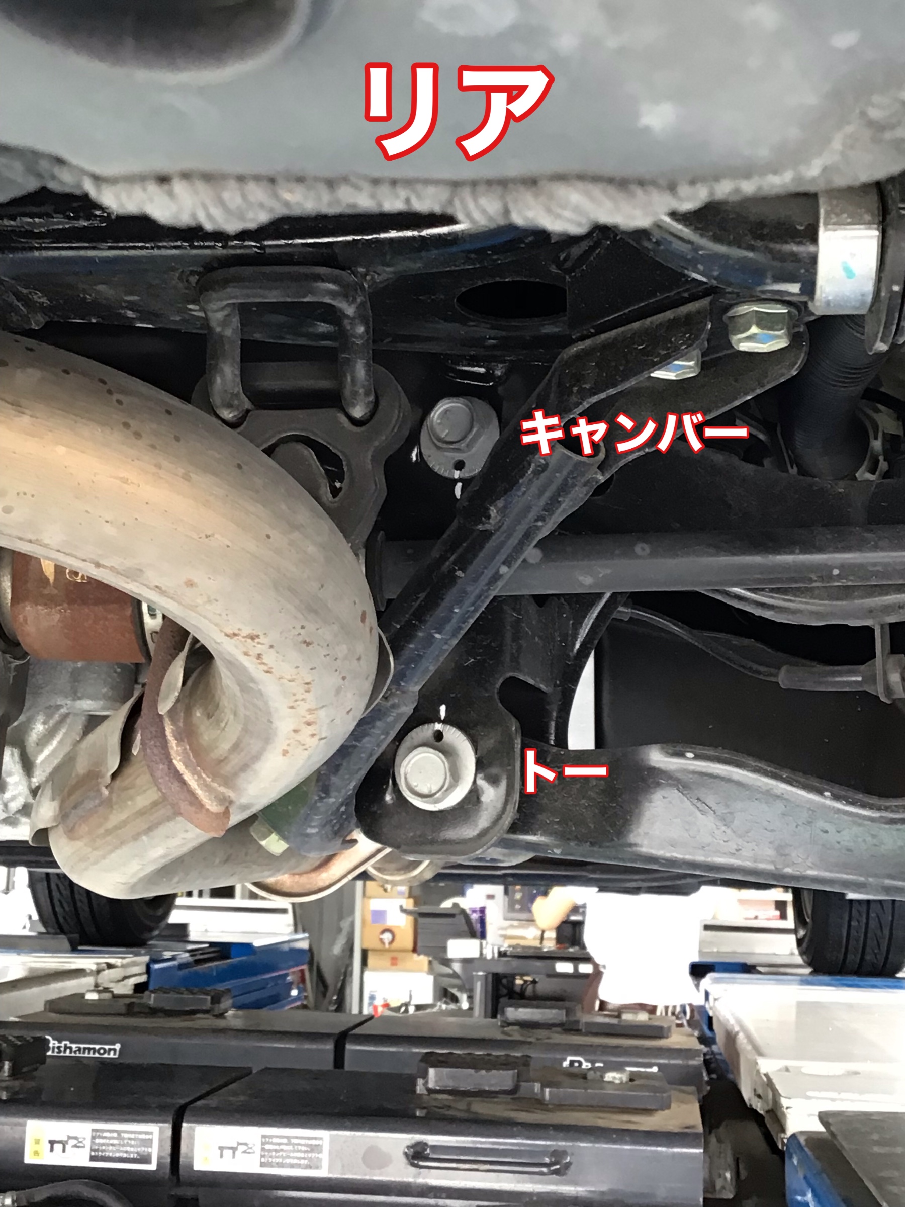 今回のお車で調整する箇所は、「フロント・リアトー&キャンバー」です!