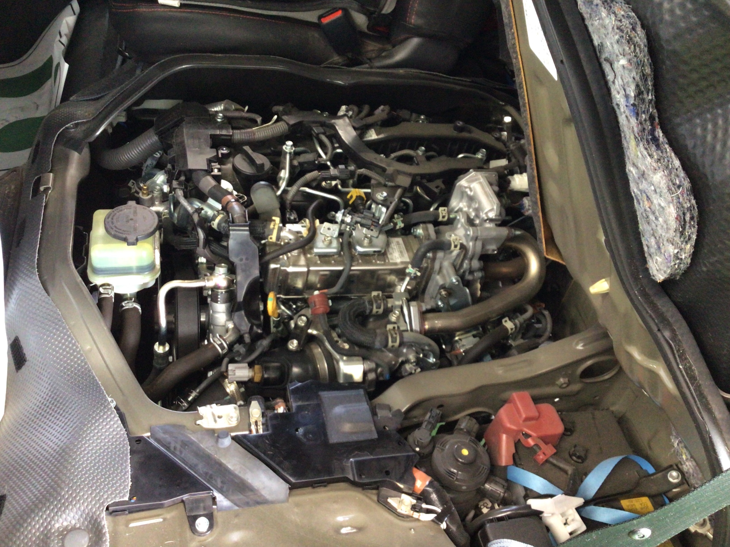 今回のようなお車(主にバン)は、シートの下にエンジンがありますので、シートを倒します。