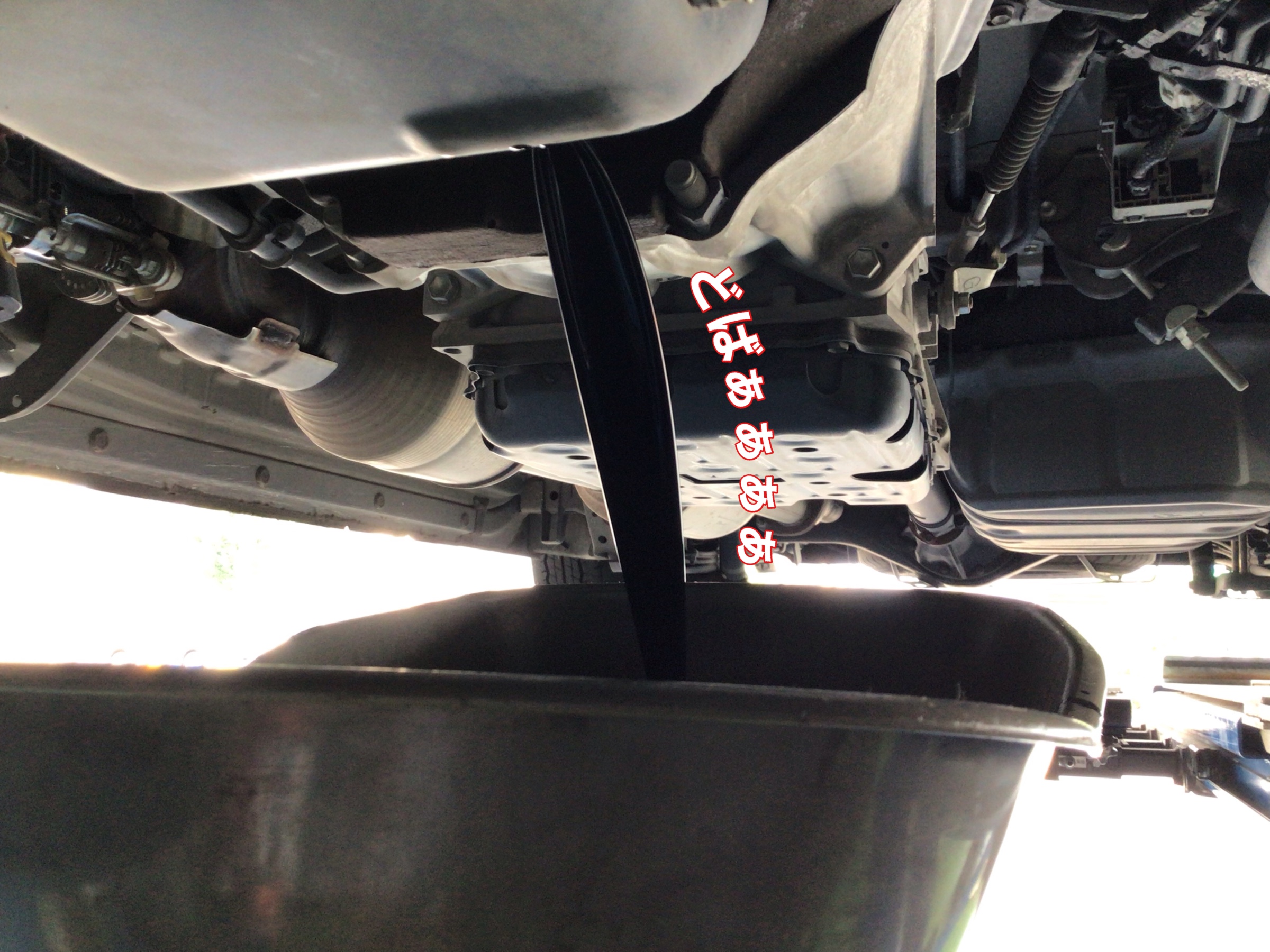 今回は下抜きをします。オイルパンの写真を掲載します。 丸で囲まれた2つを取り外し、交換します。