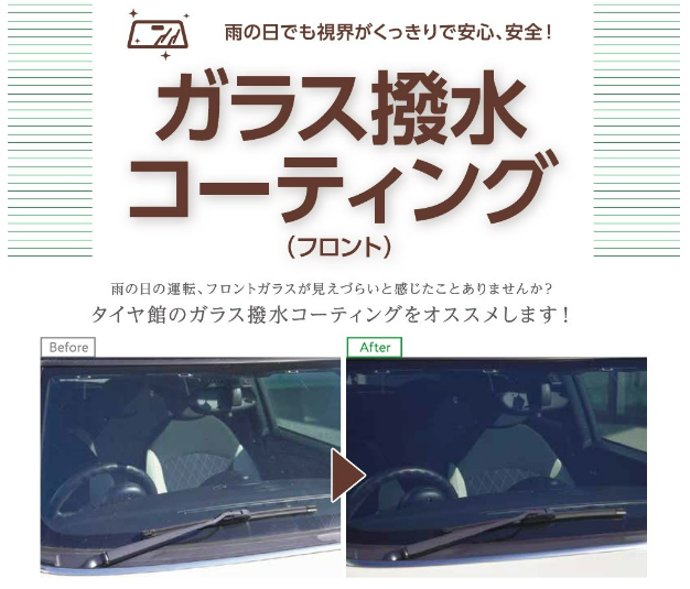 フロントガラス撥水は、¥4,400~行っております! 詳しくはスタッフまで気軽にご相談ください!