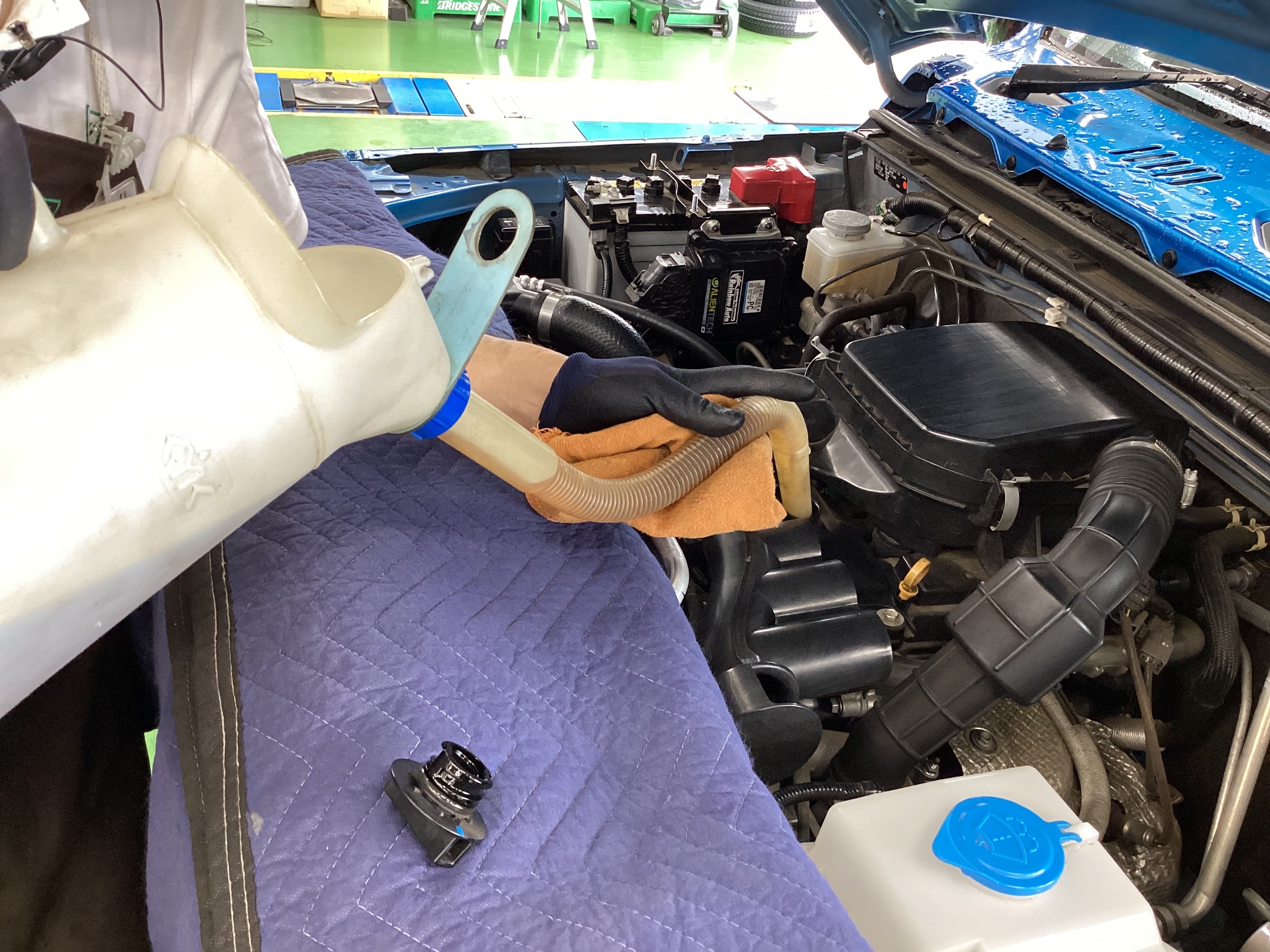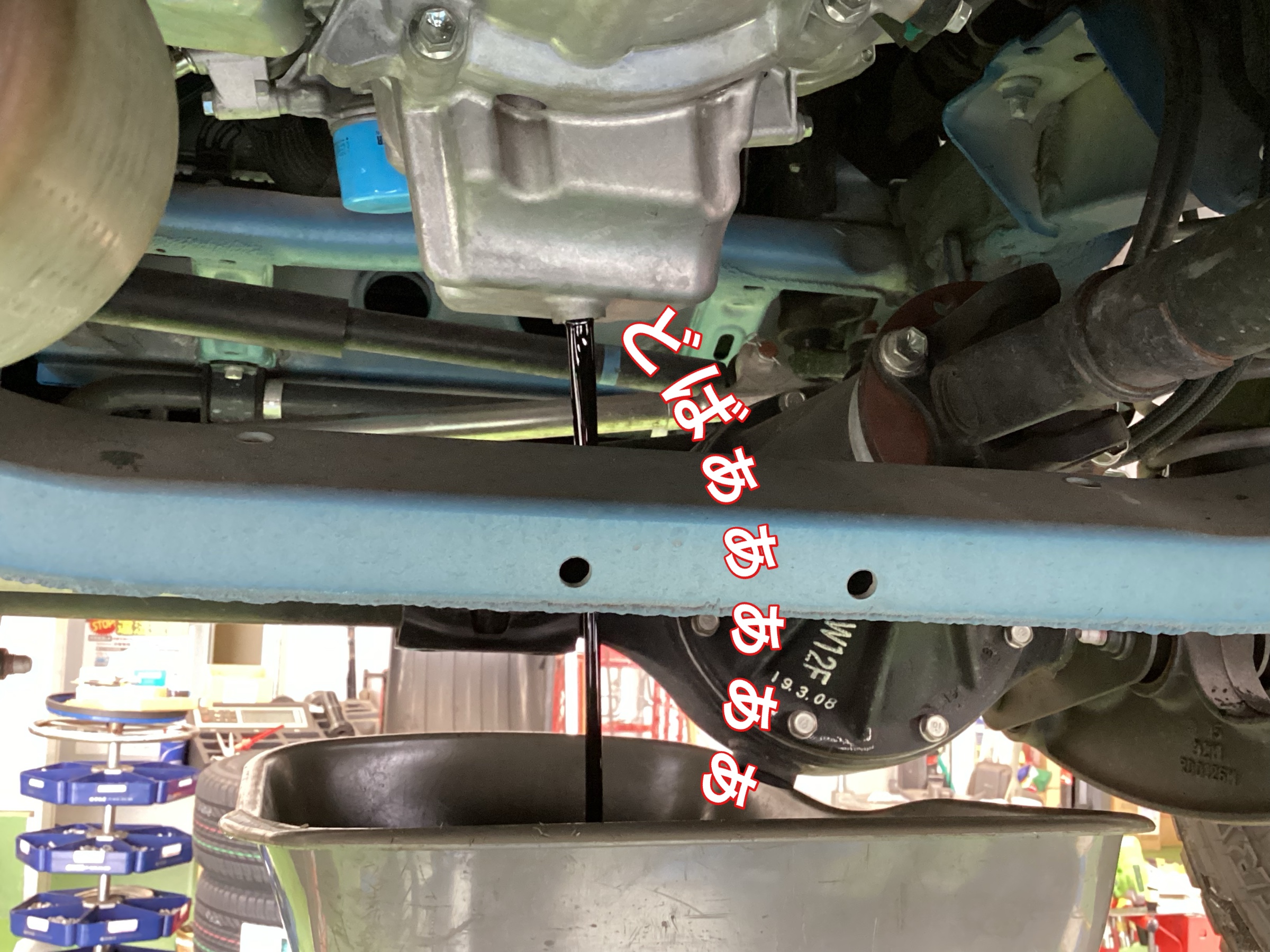 入れ終わりましたら、再度車体を上げてドレンボルトが緩んでないか漏れてないかを確認し、