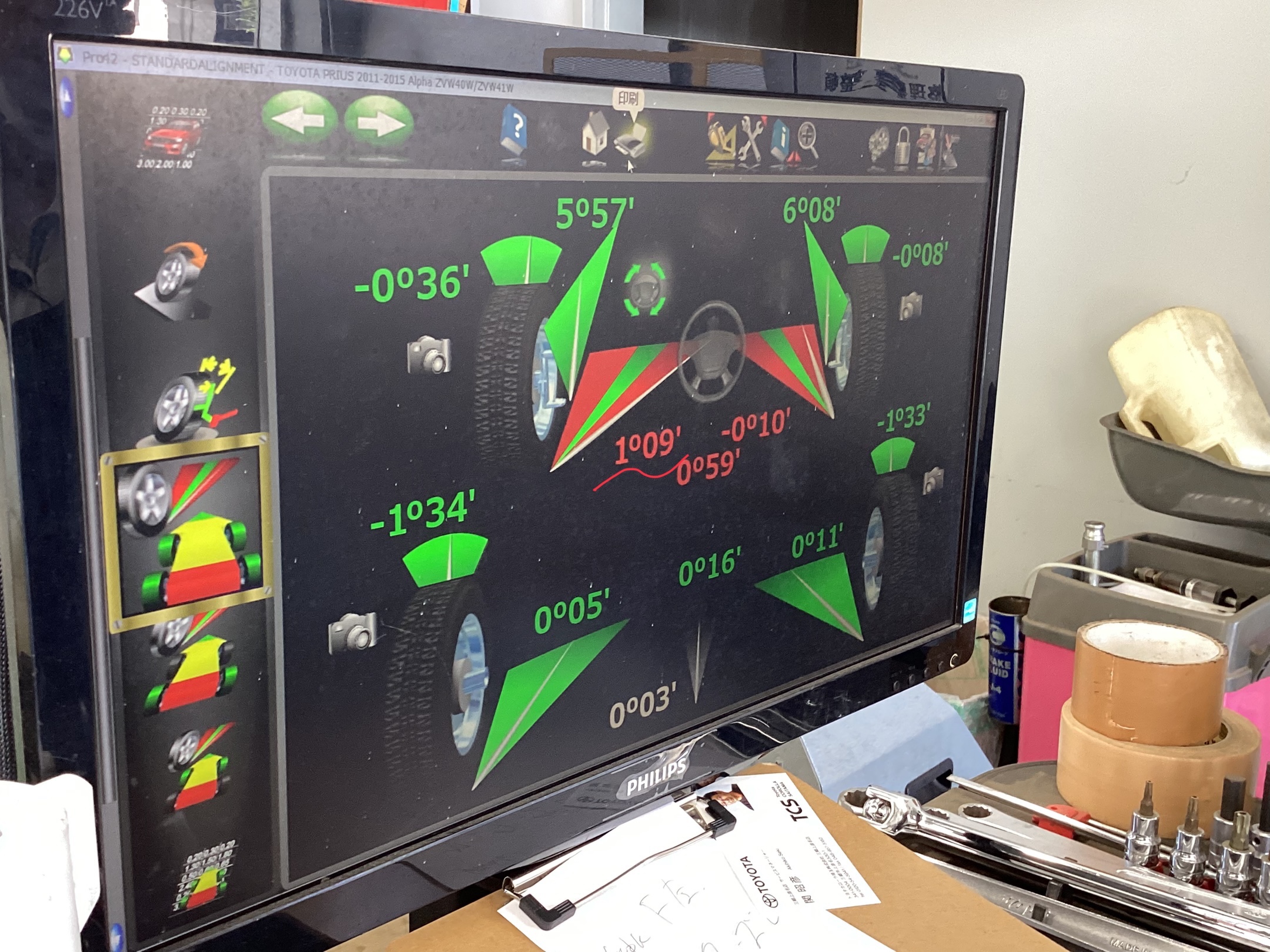 トヨタ・プリウスα(ZVW40W)アライメント調整