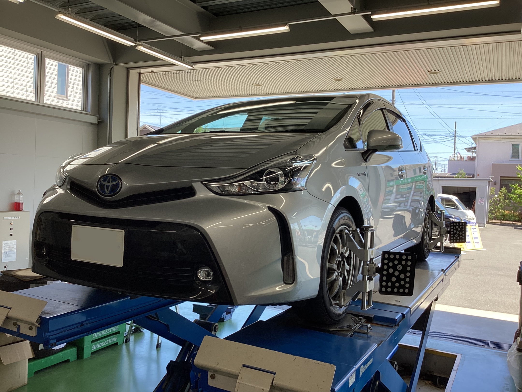 今回は、トヨタ・プリウスαより、アライメント調整のご紹介です!