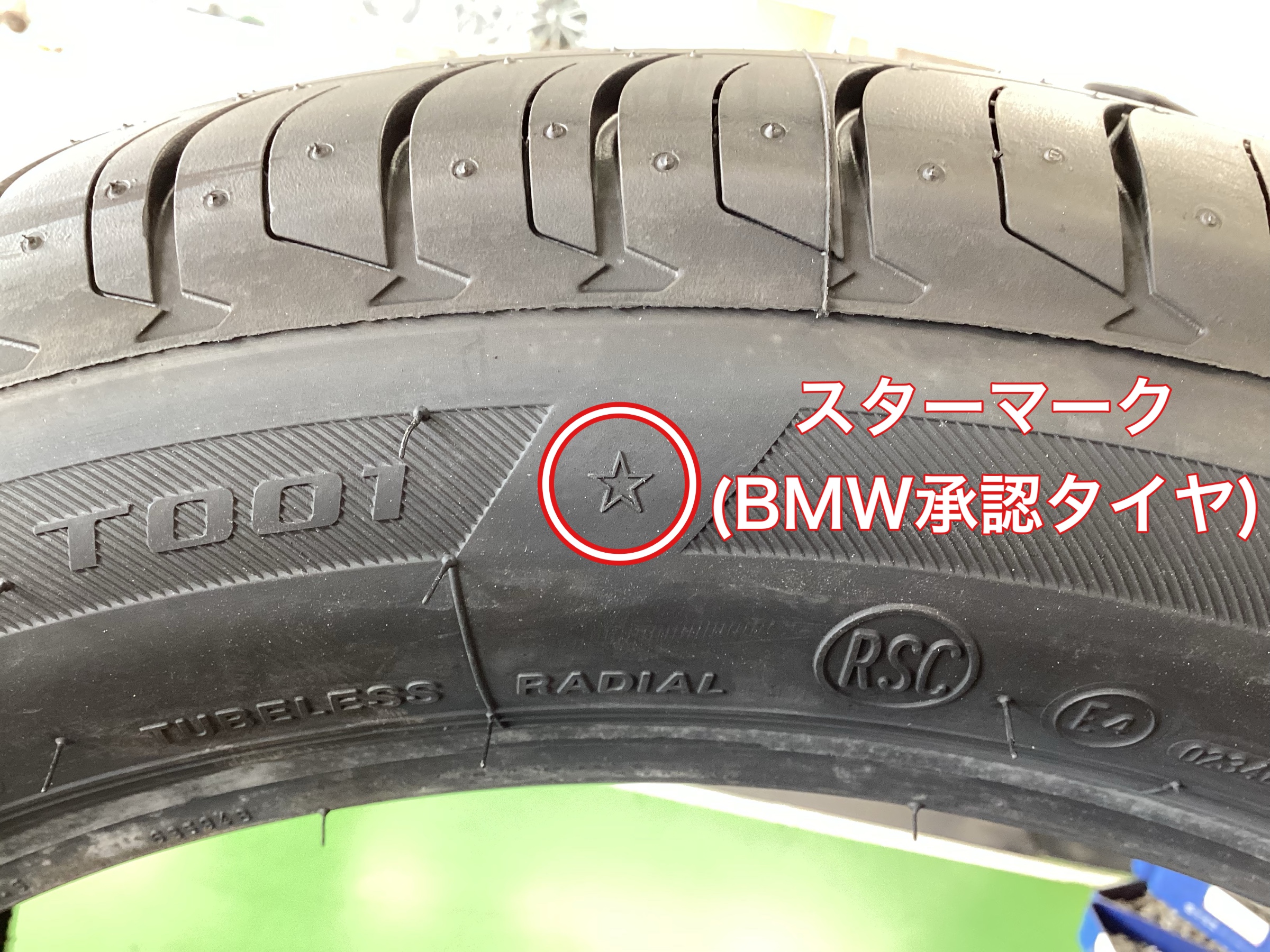 一見すると市販タイヤと同じブランドの同じ製品に見えても、この★(スターマーク)が、BMWのために専用開発された承認タイヤであることを証明しています。