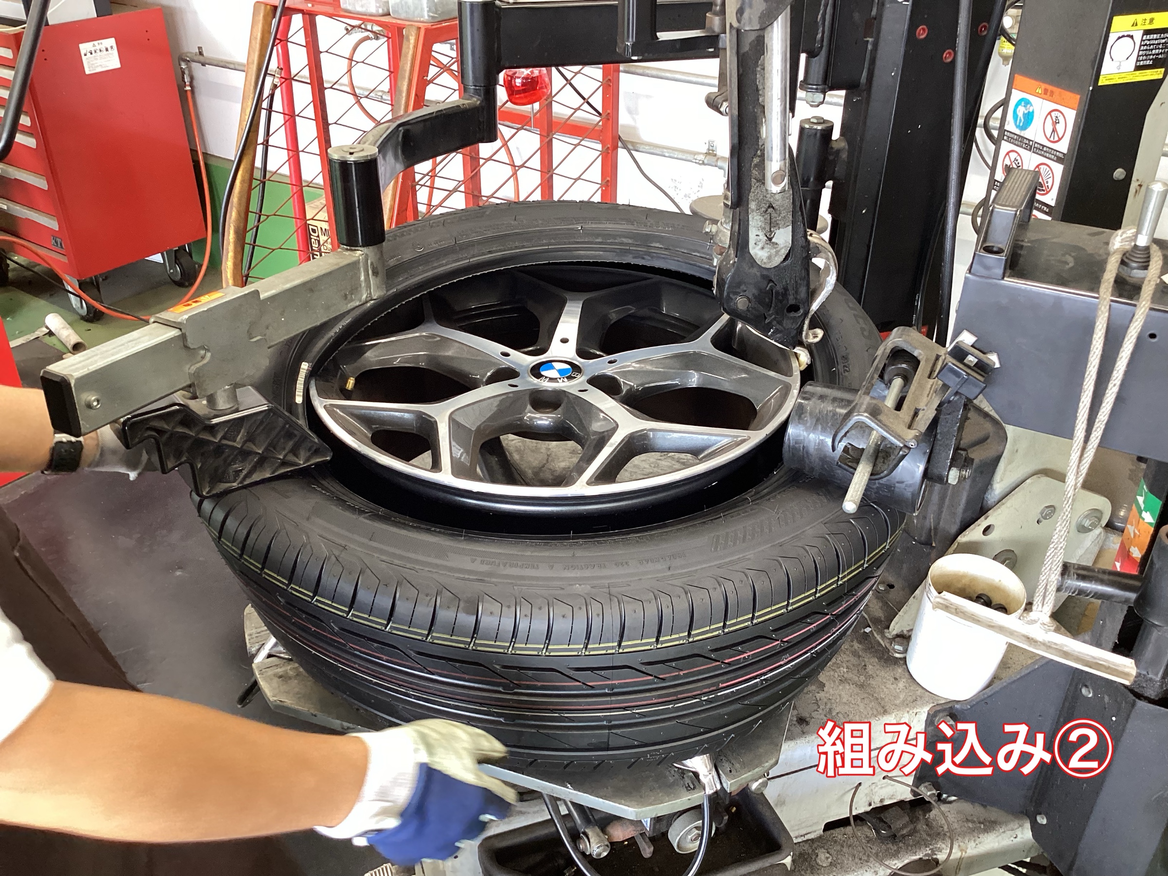 そして、上の2つの工程が終わりましたらいよいよ新品タイヤを組んでいきます!