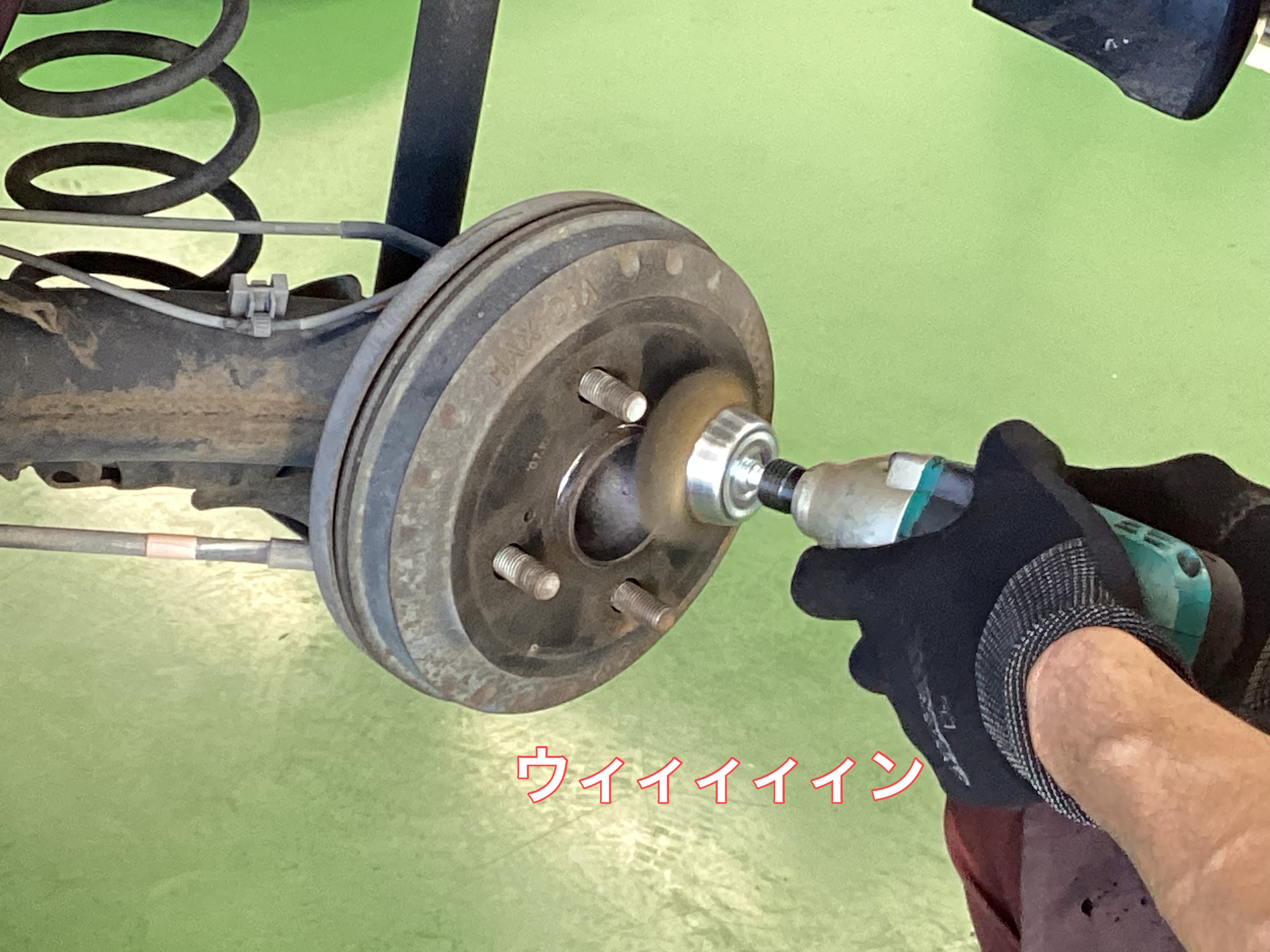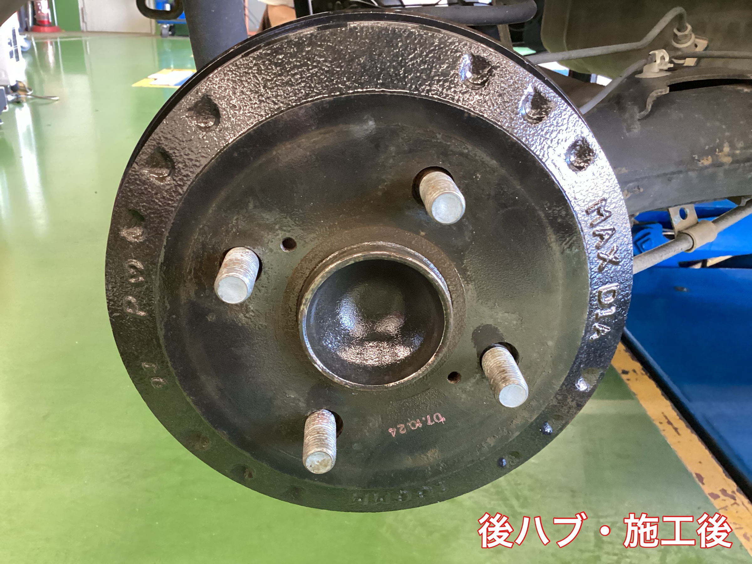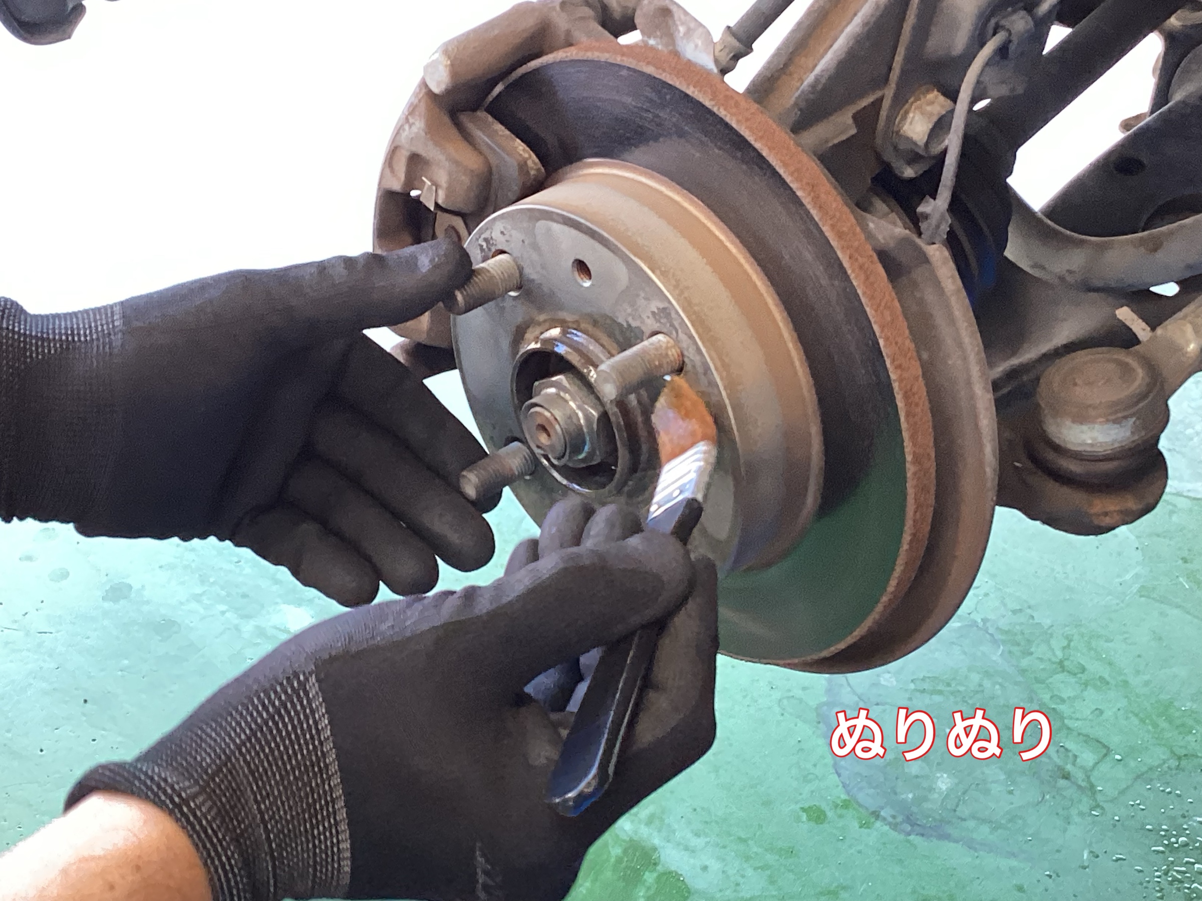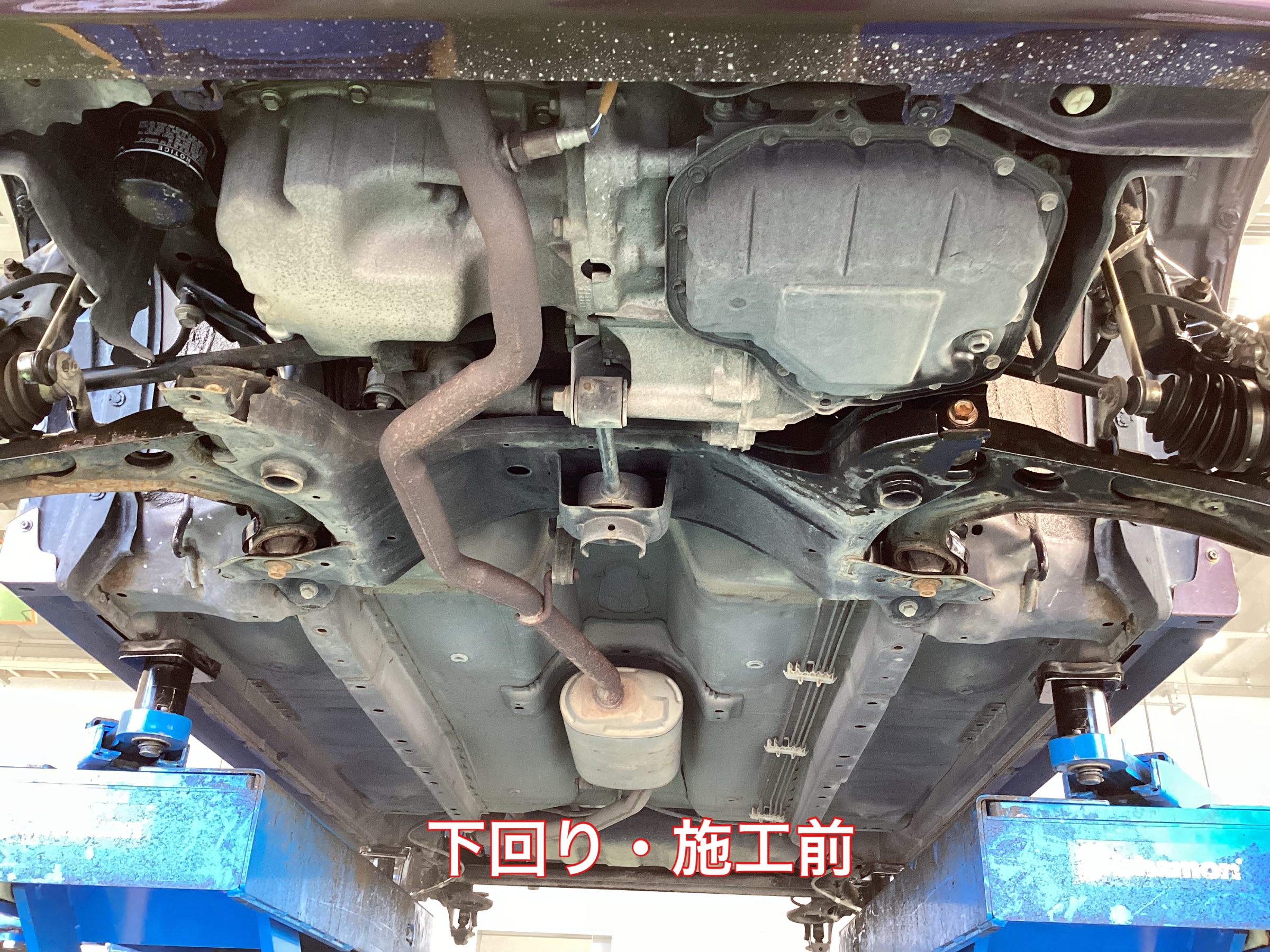 今回の防錆施工は、「ハブ」と「下回り」の2か所を行います。防錆施工フルコースです。