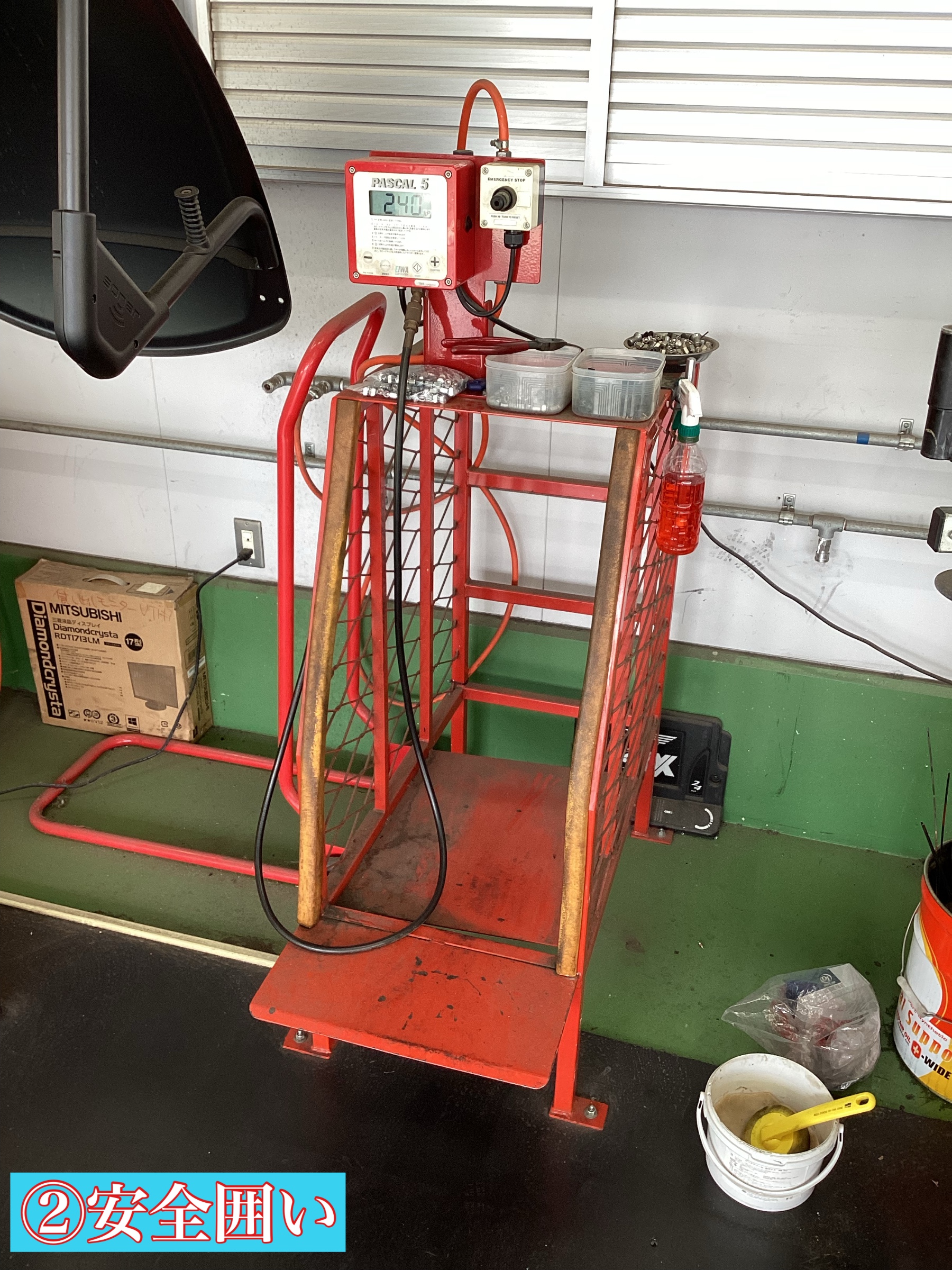 ここで車体を持ち上げて作業を行います。(立ち入りはご遠慮下さい。)