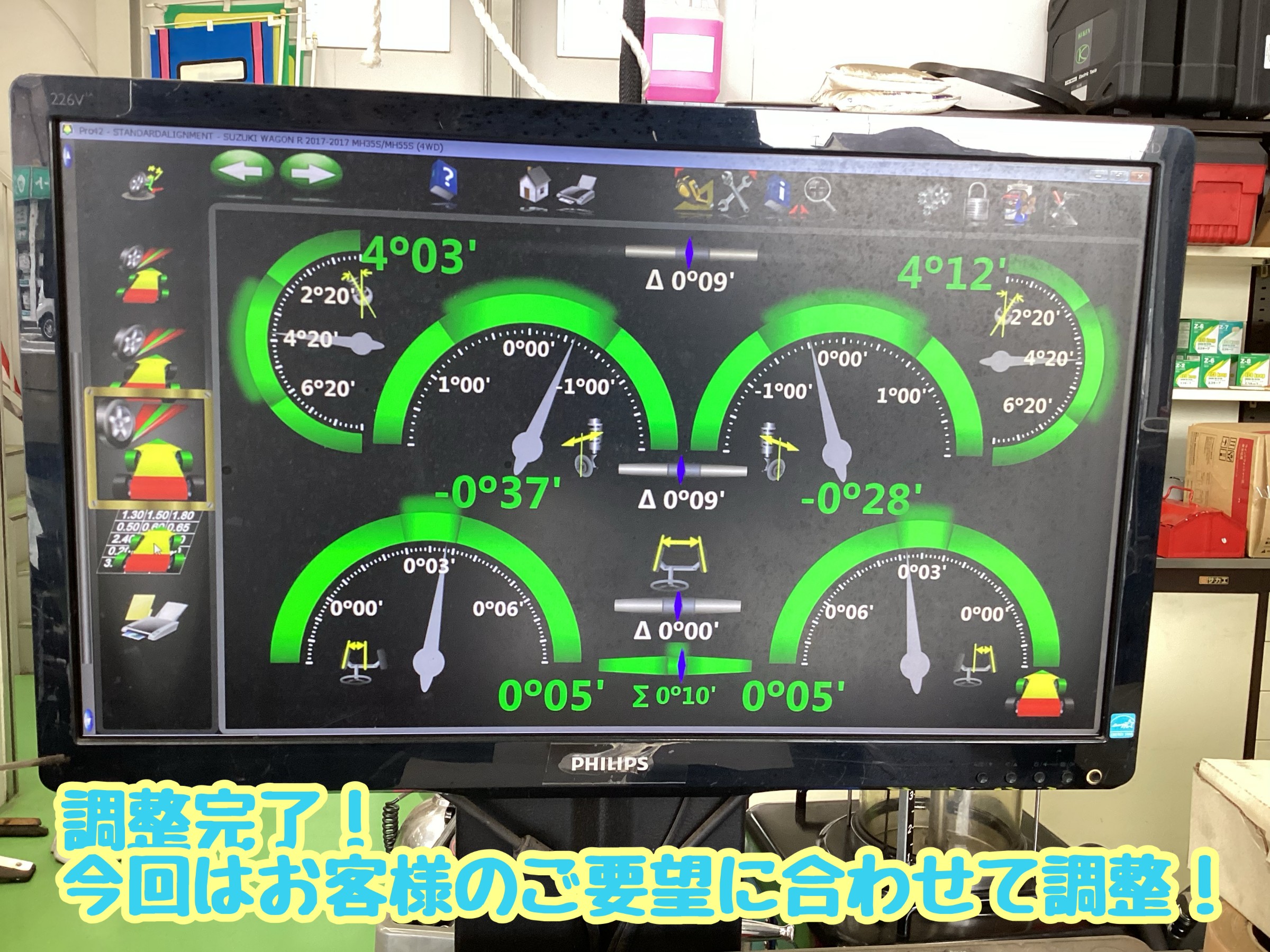 今回は、お客様のご要望に合わせて調整いたしました! 基本的には基準値に調整しますが、
