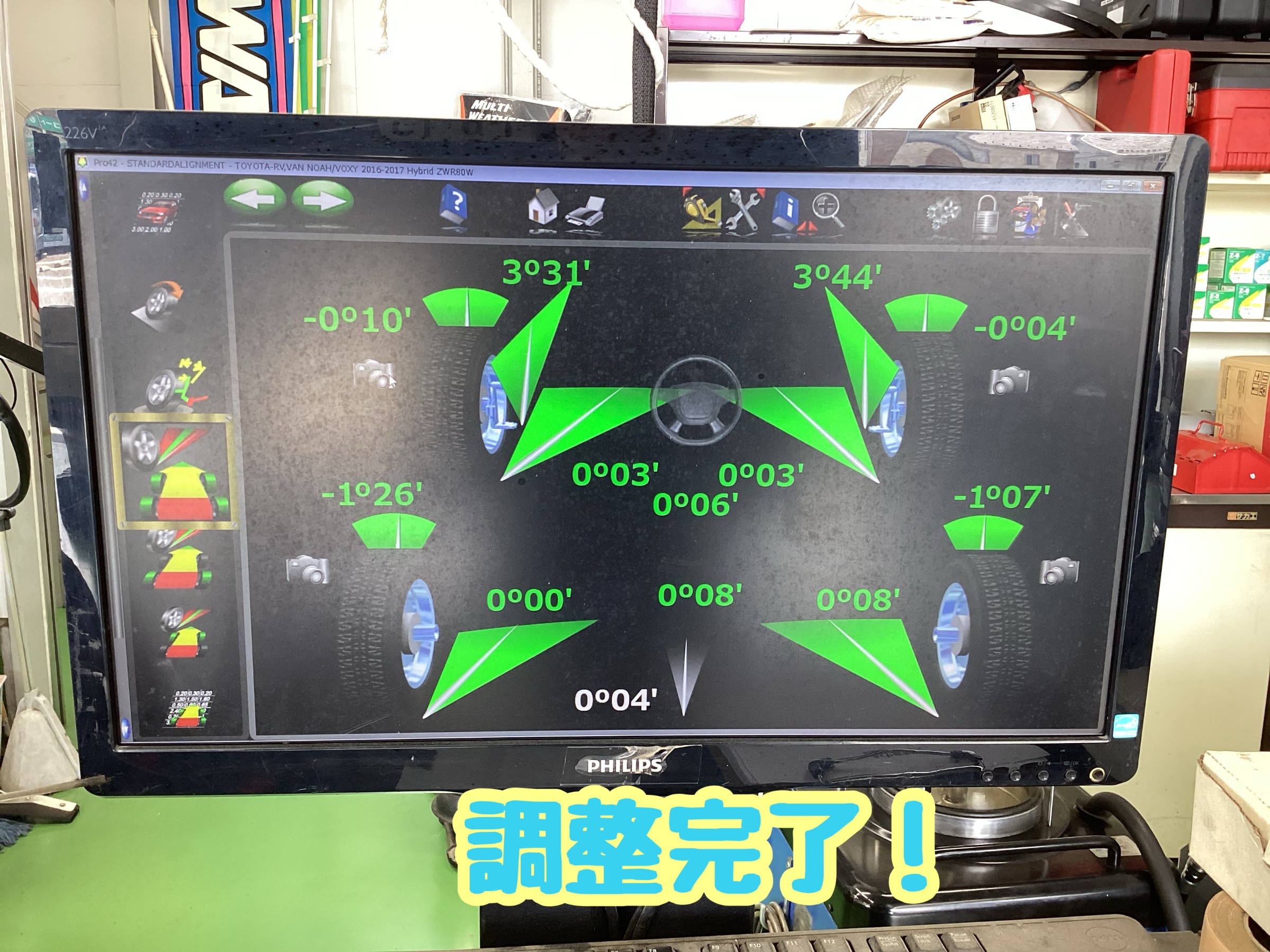 アライメント調整が完了しました! この後に実際に試走し異常がなければ作業完了です!