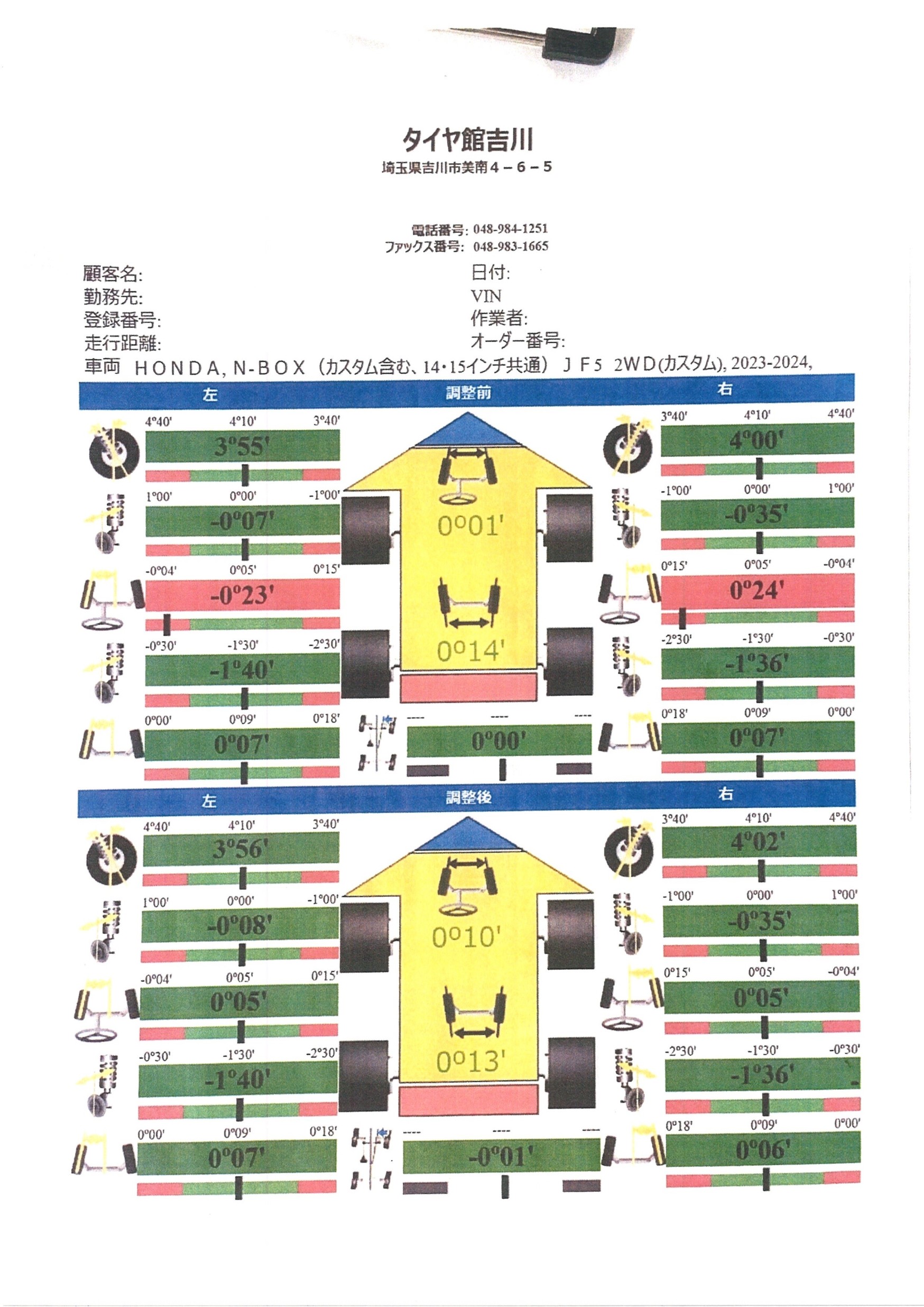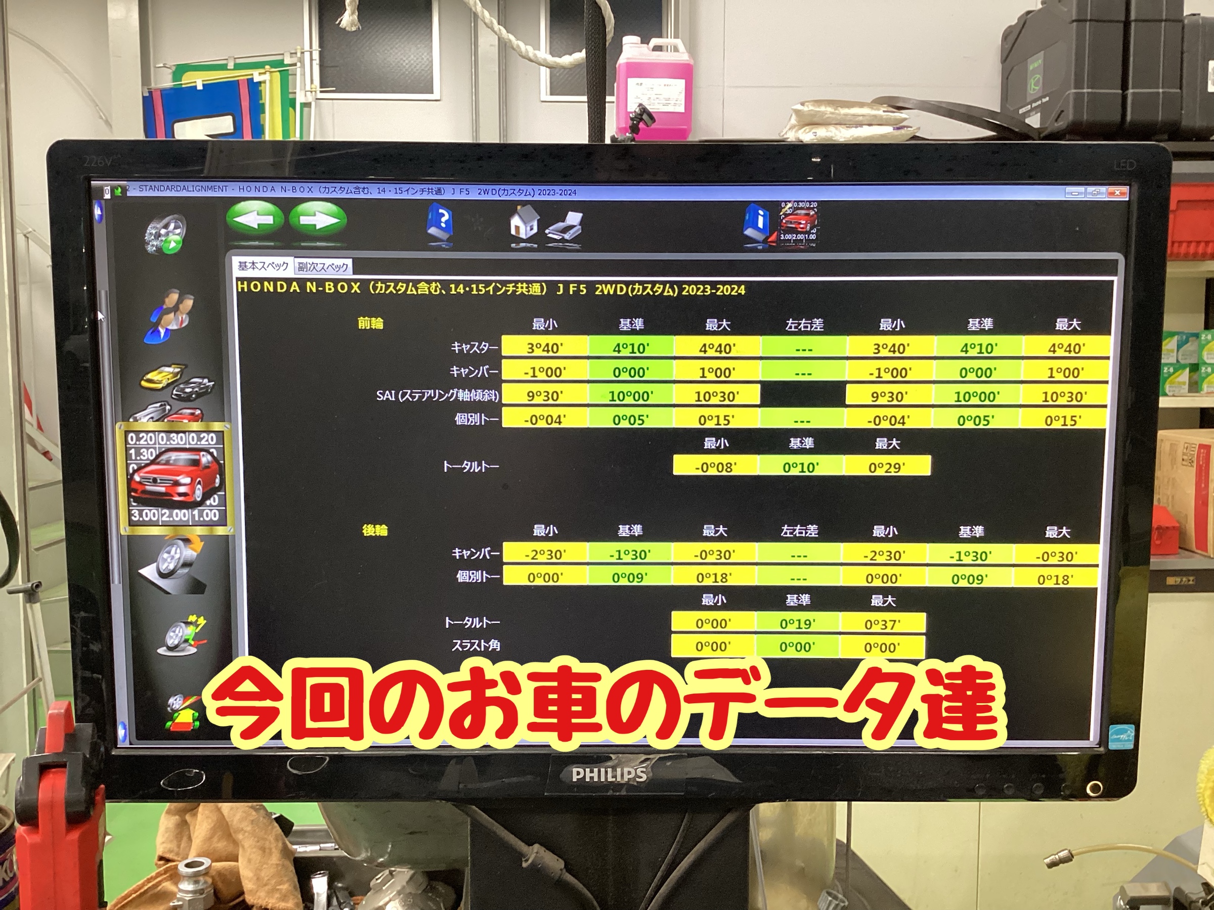 今回のお車は「フロントトー」の調整です!