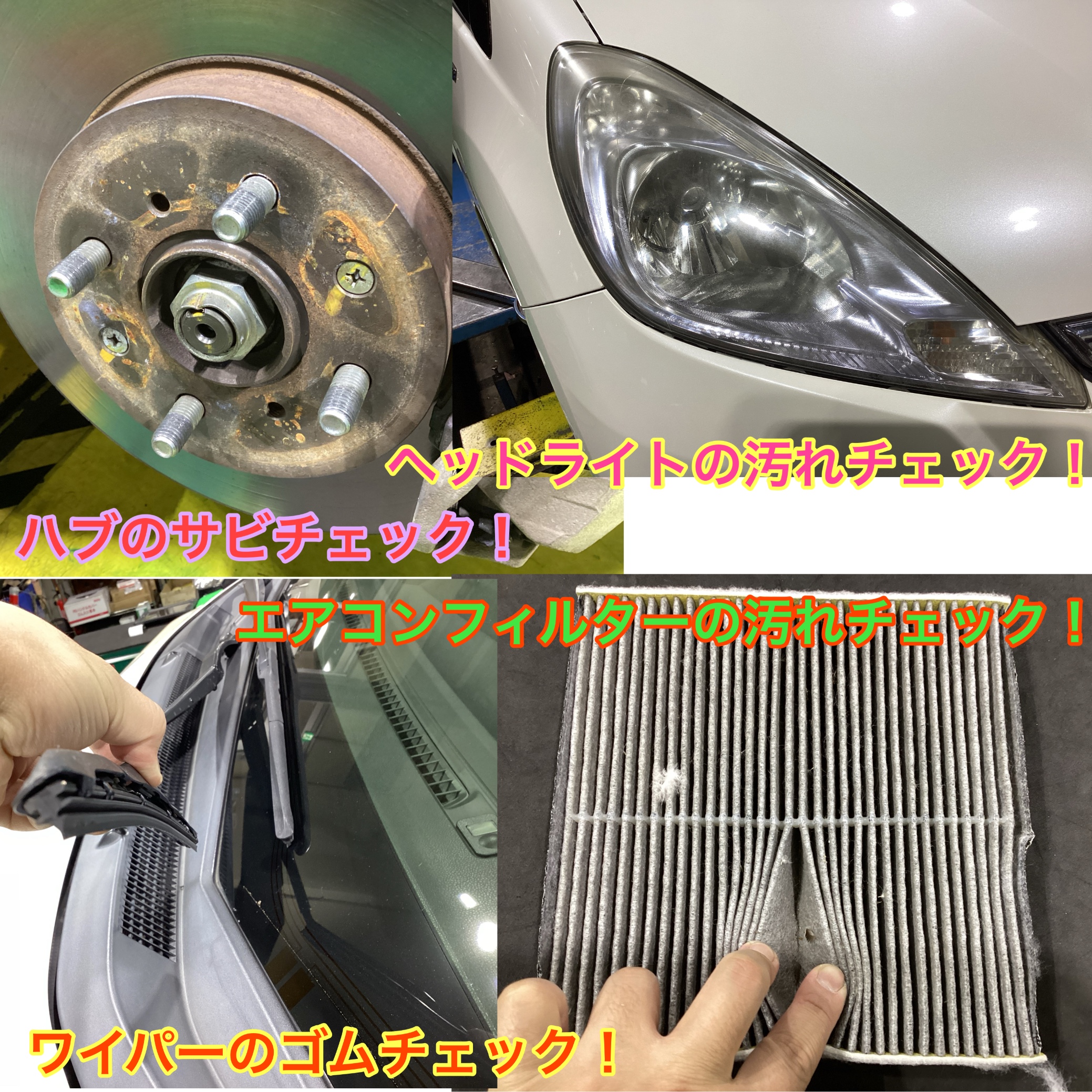 ヘッドライト、ワイパー、ハブ、エアコンフィルターをチェックします!