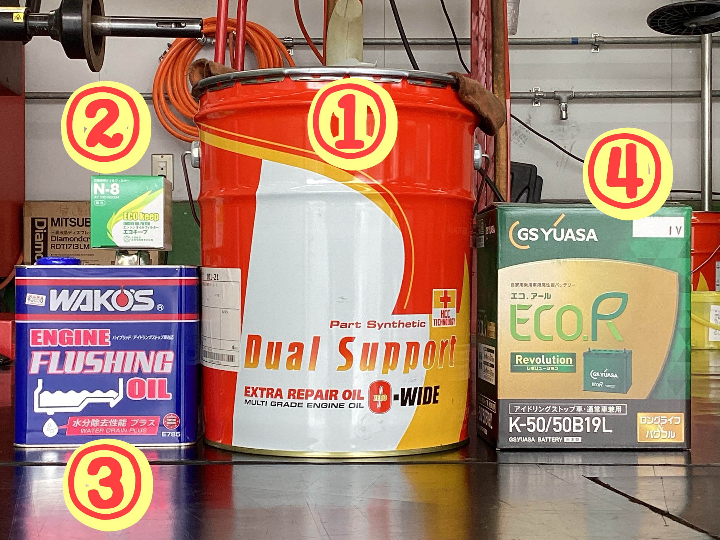 ①エンジンオイル・デュアルサポート 0-WIDE