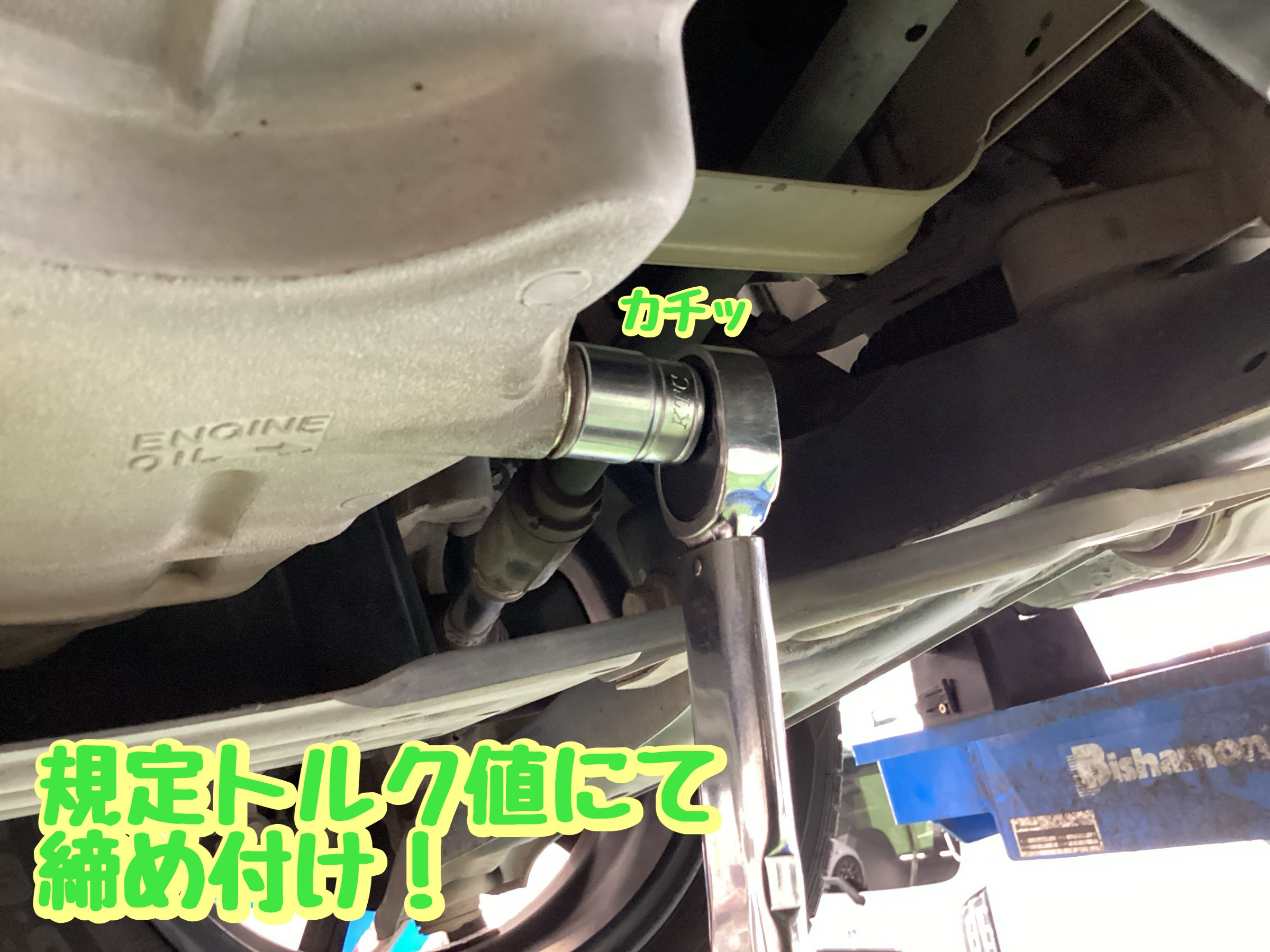 オイルが抜けきりましたら、ドレンボルトを締めていきます。この際、規定トルク値にて締めていきます。