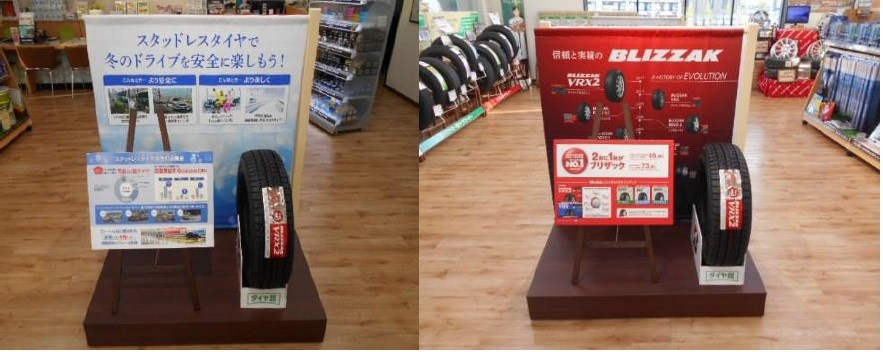 夏タイヤから冬タイヤバージョンに店内の