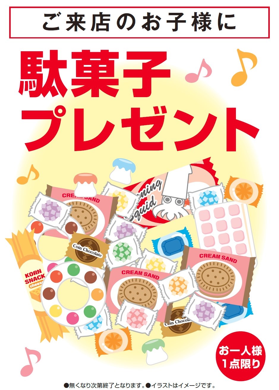 お子様とご一緒に来店された方にお子様限定でお菓子の詰め合わせをプレゼントさせて