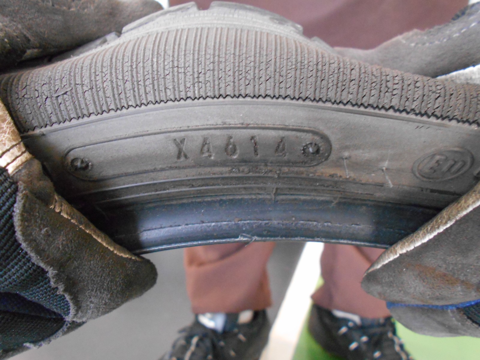 外したタイヤ負荷をかけると、こんなに亀裂が((+_+))