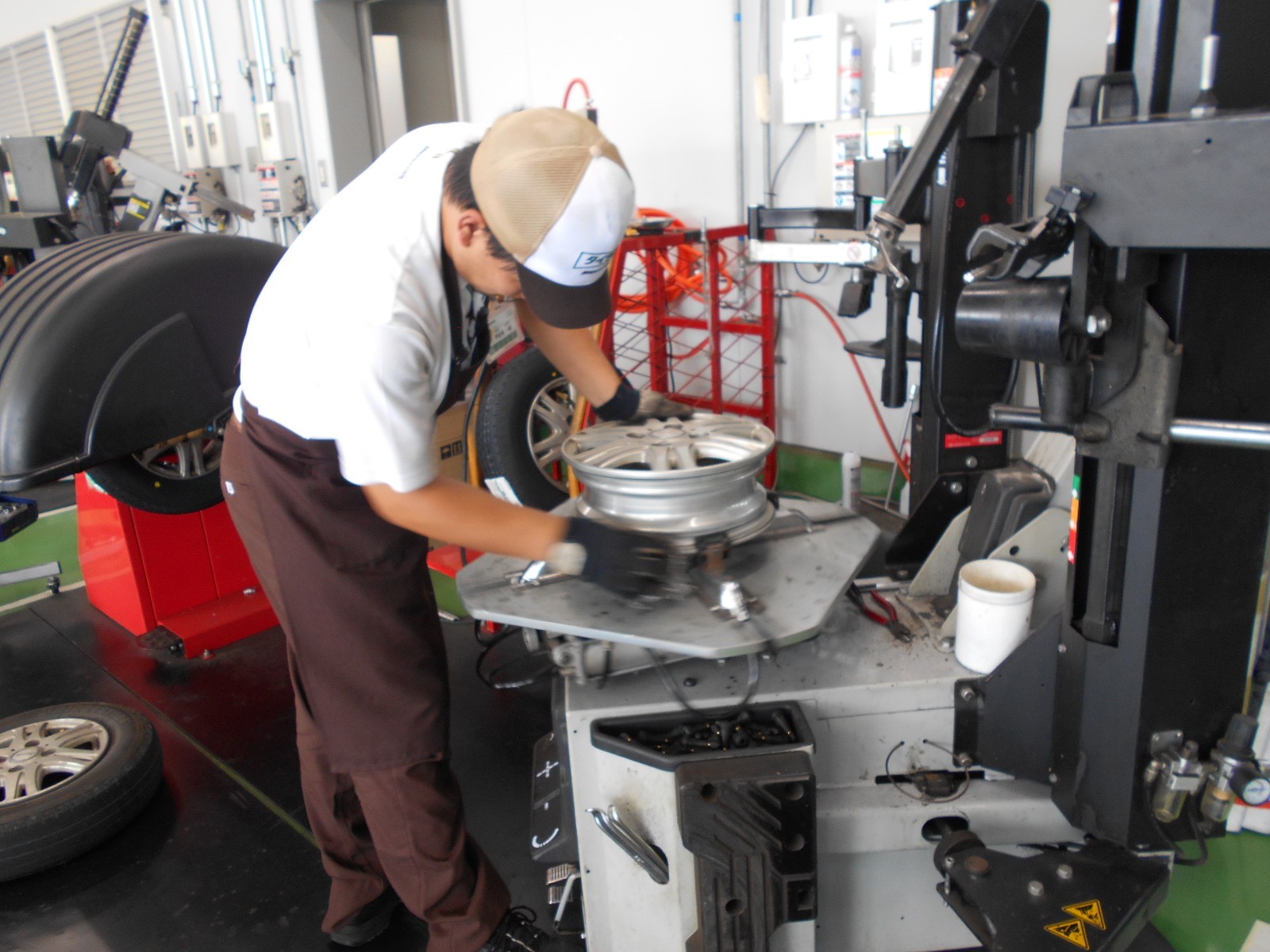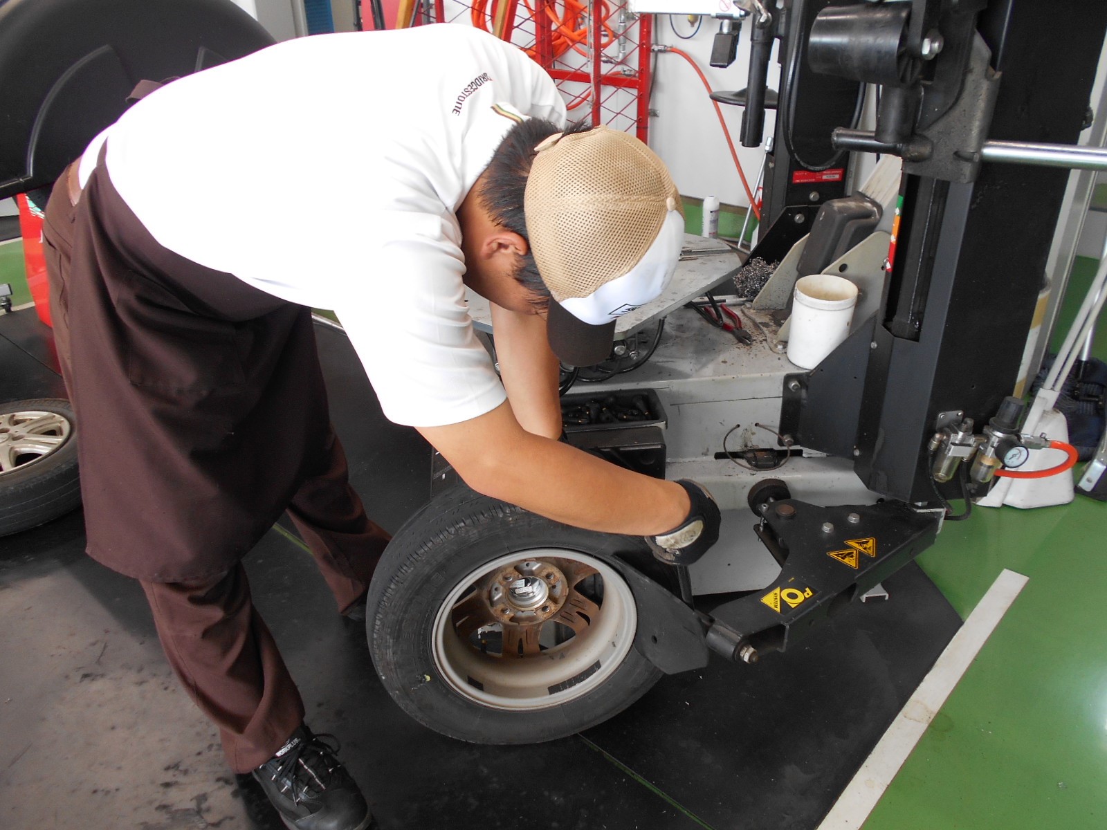 ②交換前の古いタイヤを、剥がす作業中です!