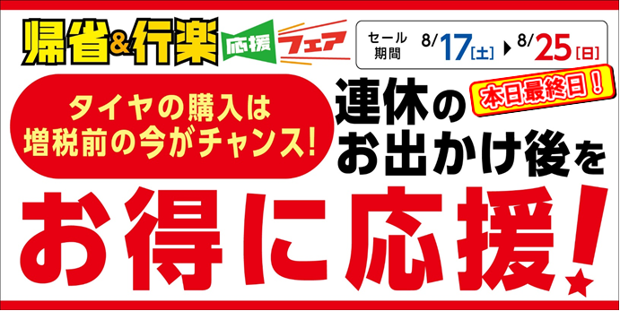 盆中の帰省や、お出かけ後の疲れた愛車を点検しませんか???