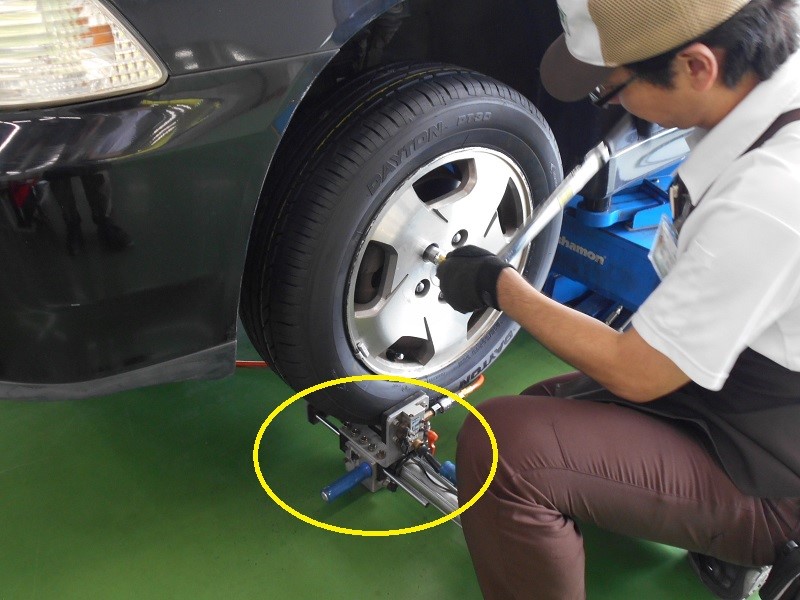 左の黒いカバーのようなのは、バランサー!ホイールバランスを取り完了♪