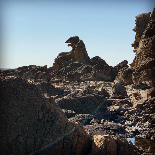 ・夕暮れ時は、夕日のオレンジと影になった岩が黒く見えて、ゴジラに見えるそうですが