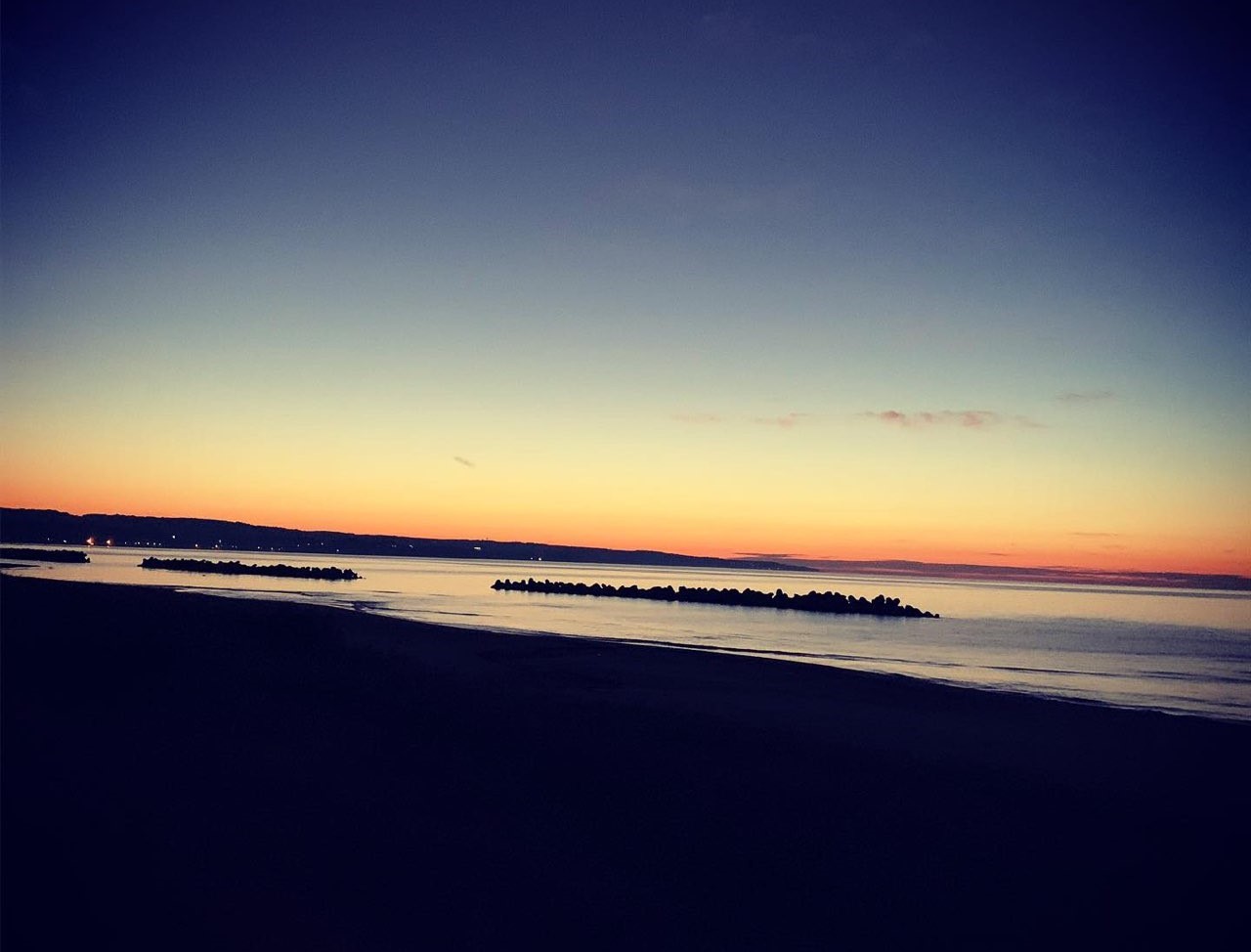 友人宅へ帰る途中に見れた夕暮れ~空気が綺麗で関東の海で見るのと
