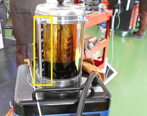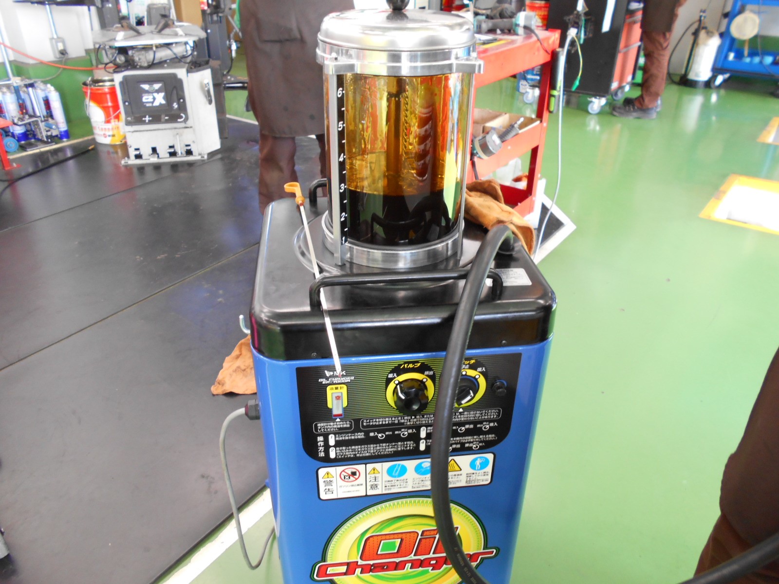 写真のように、抜いているオイルは廃油タンクに溜まります。