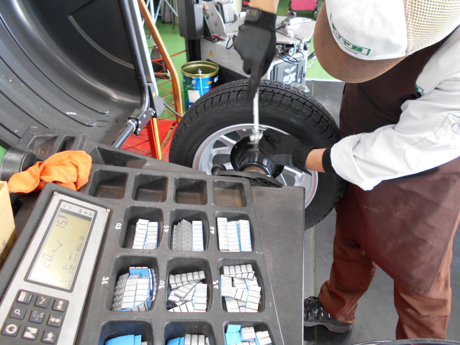 ②組み込んで、空気充填出来たらホイールバランスの調整です!