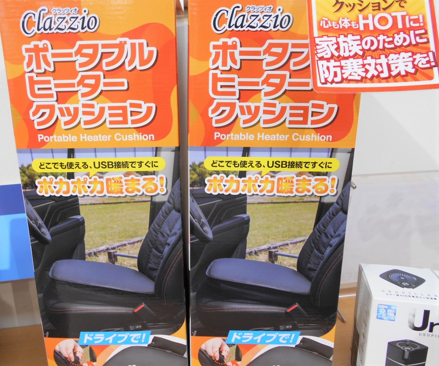 当店でも数量限定でお車で使える『 ポータブルヒータークッション 』ございます♪