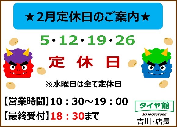 明日 2/26 水曜日は 当店定休日となります。