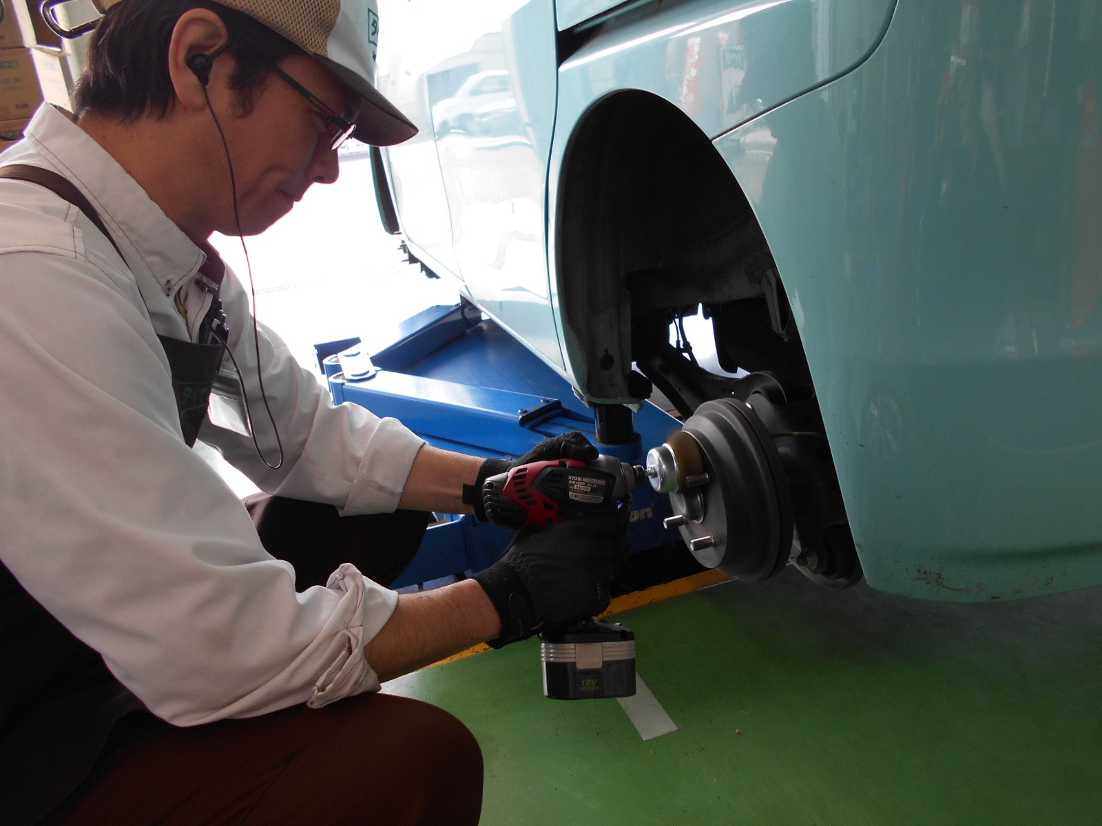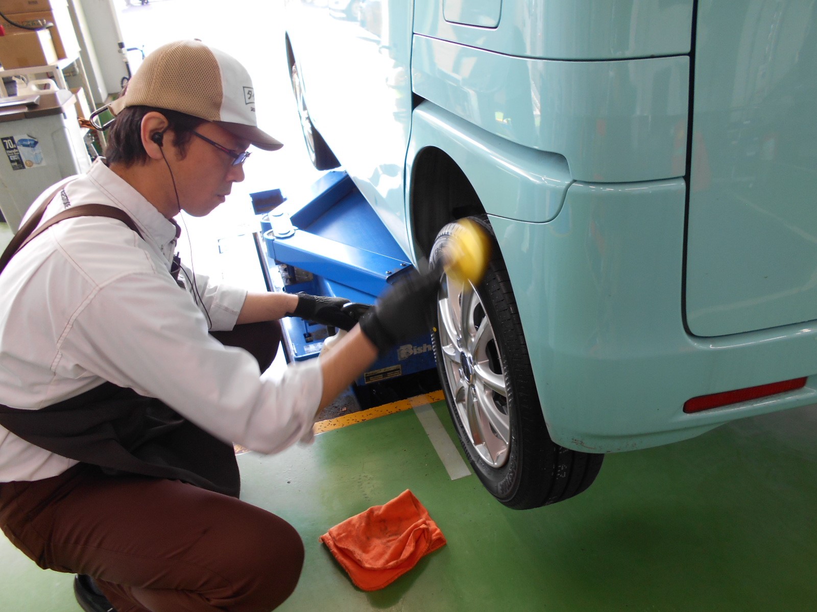 ▼4輪とも施工が終えたら、タイヤを装着します。