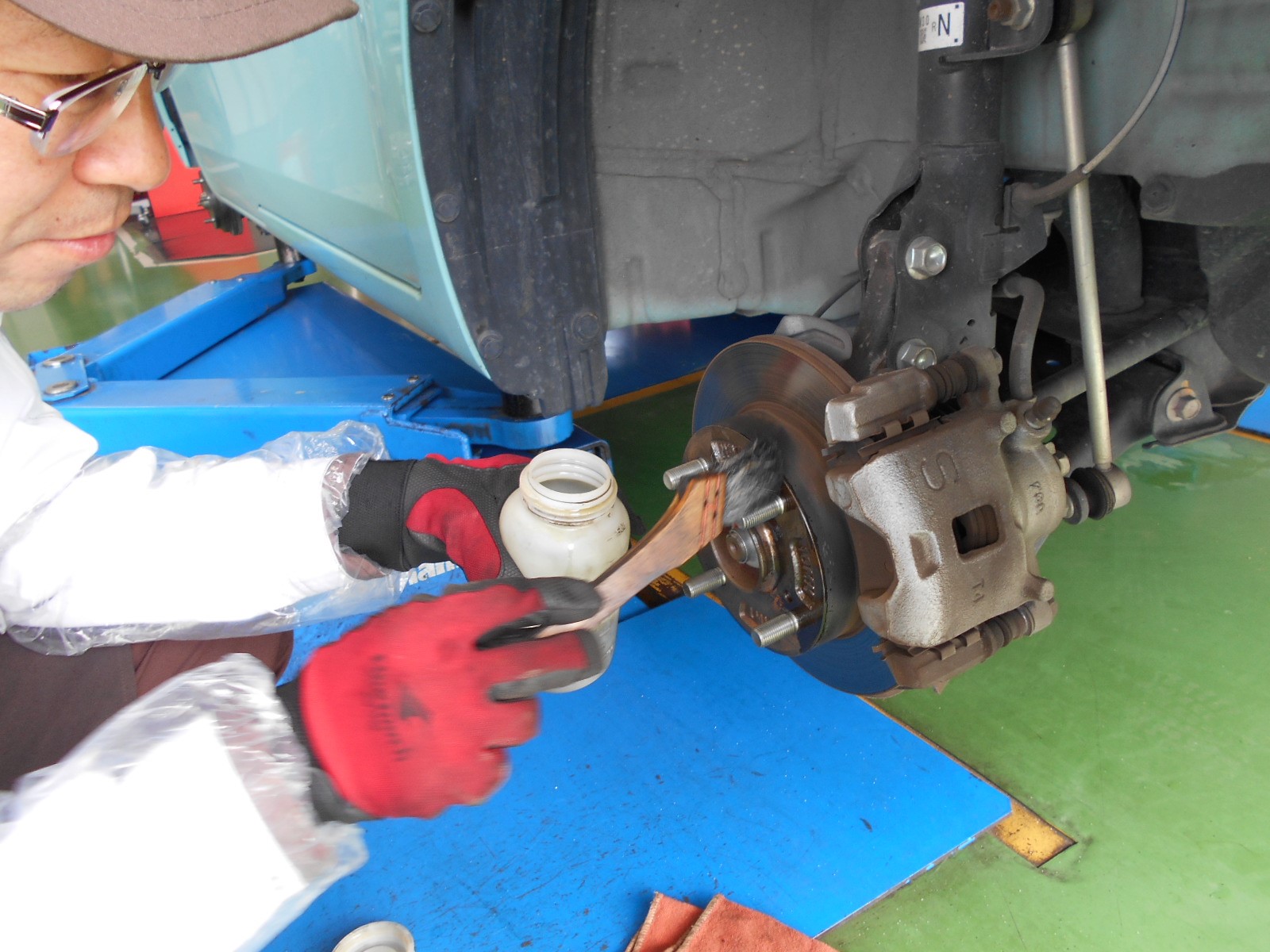 ハブ部分の防錆施工です!!付着している錆を専用工具で磨き落とします!
