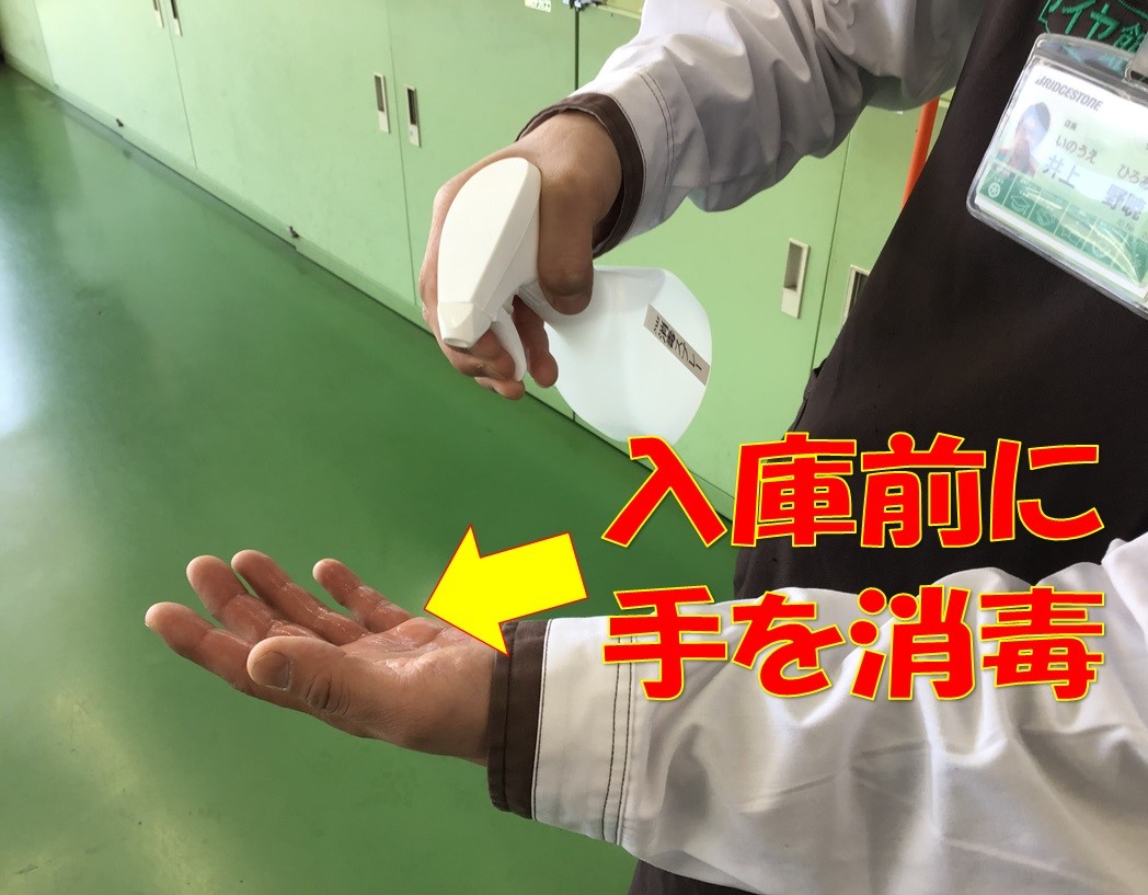 当店では、お車の入庫前にしっかりと手の除菌をさせていただいています!