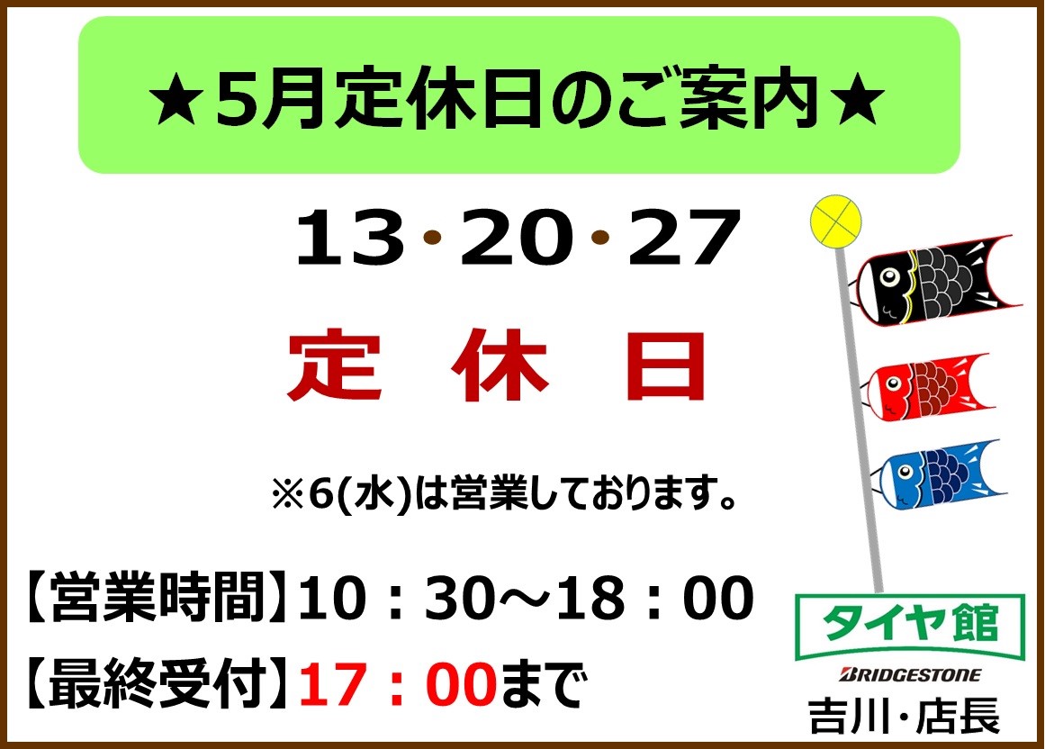 明日 5/27 水曜日は 当店定休日となります。