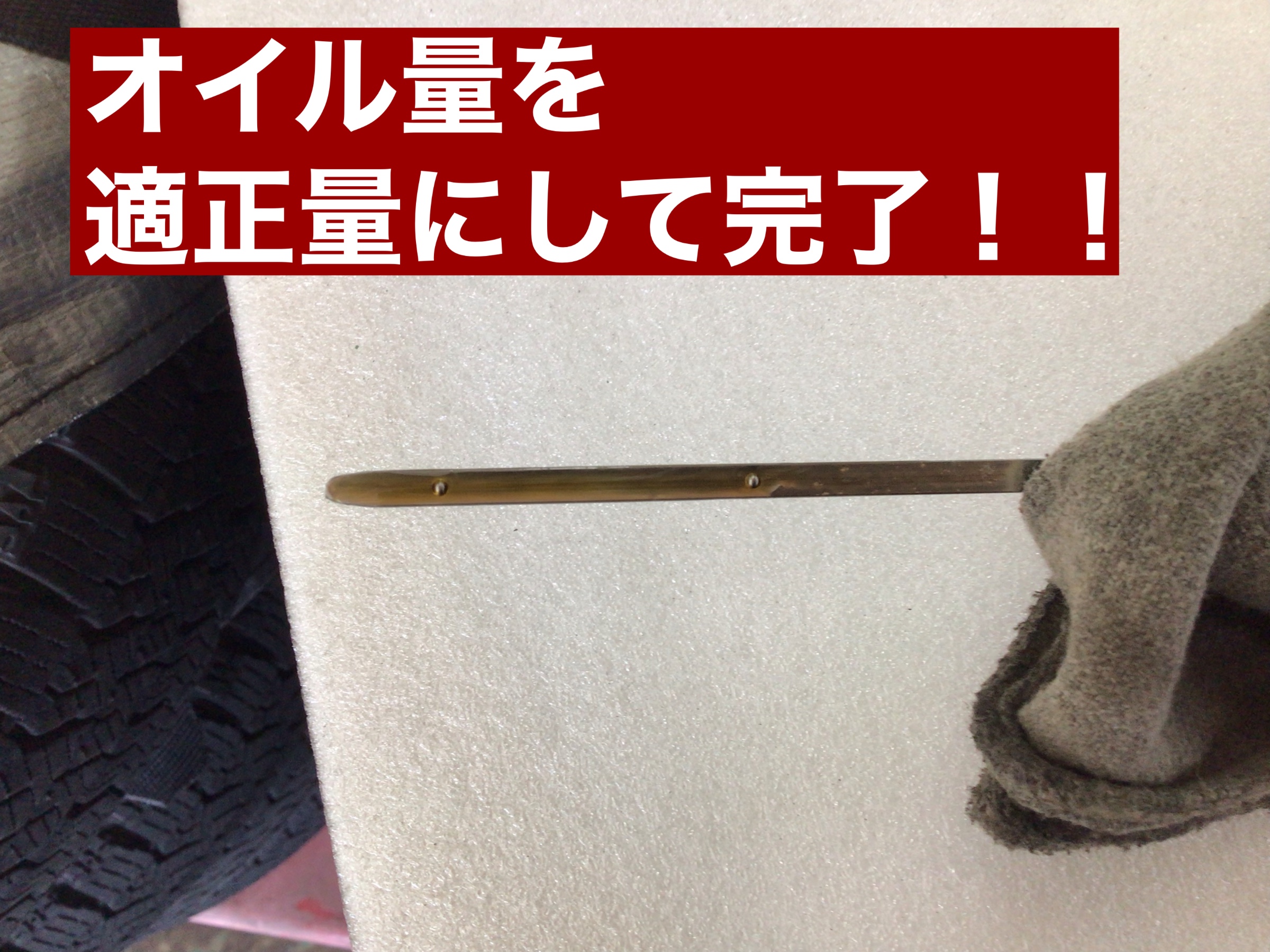 エンジンオイルゲージの先っぽにしかオイルがついてきませんでした・・・(;´・ω・)