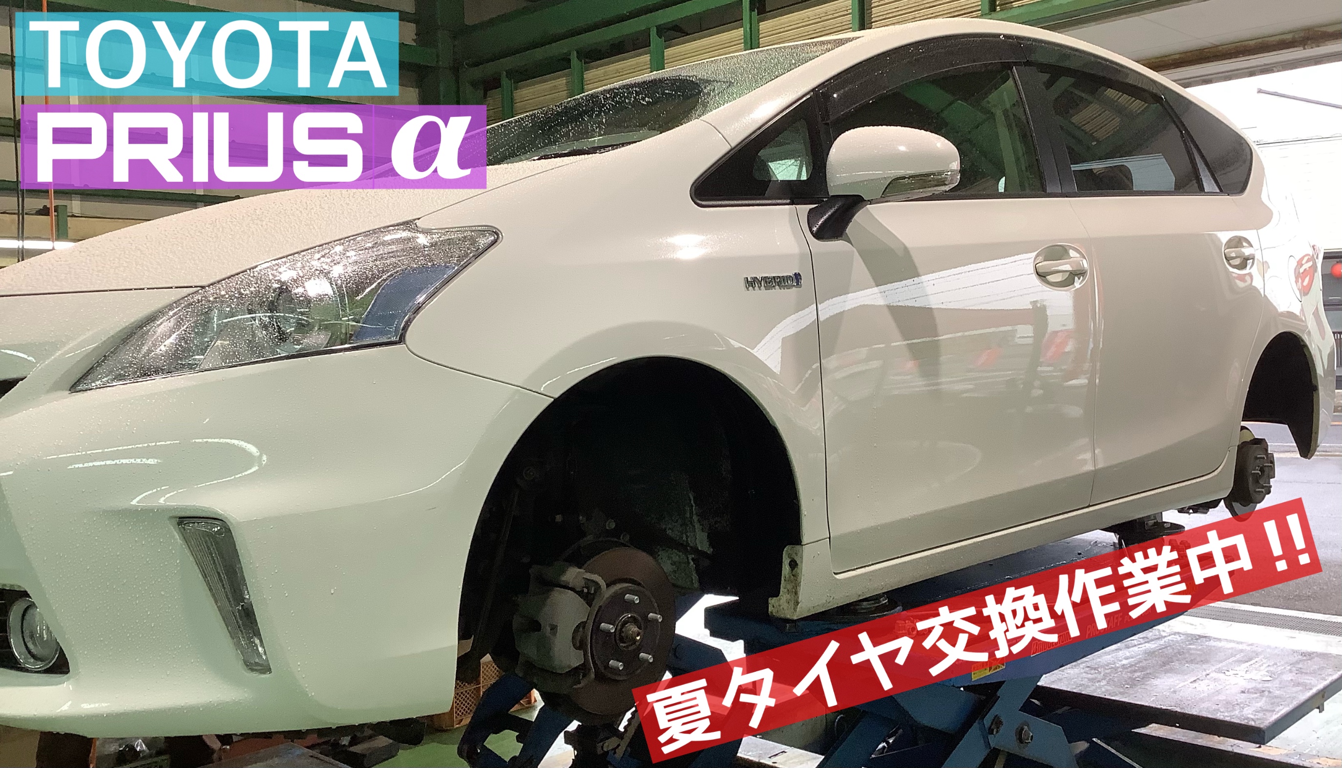本日は、【トヨタ/プリウスアルファ】の夏タイヤ交換作業です