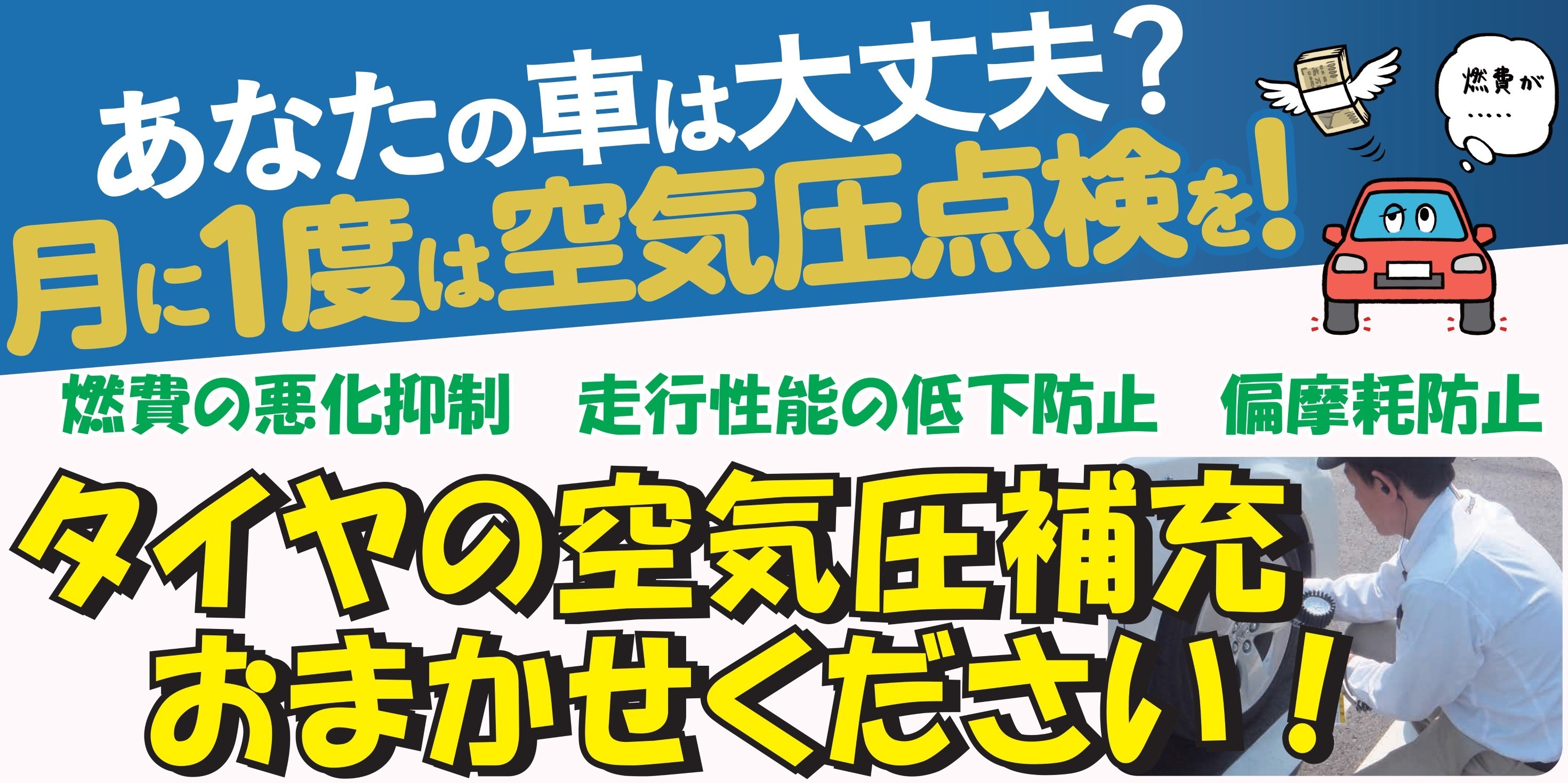 【タイヤの空気圧チェック、いつしましたか?】