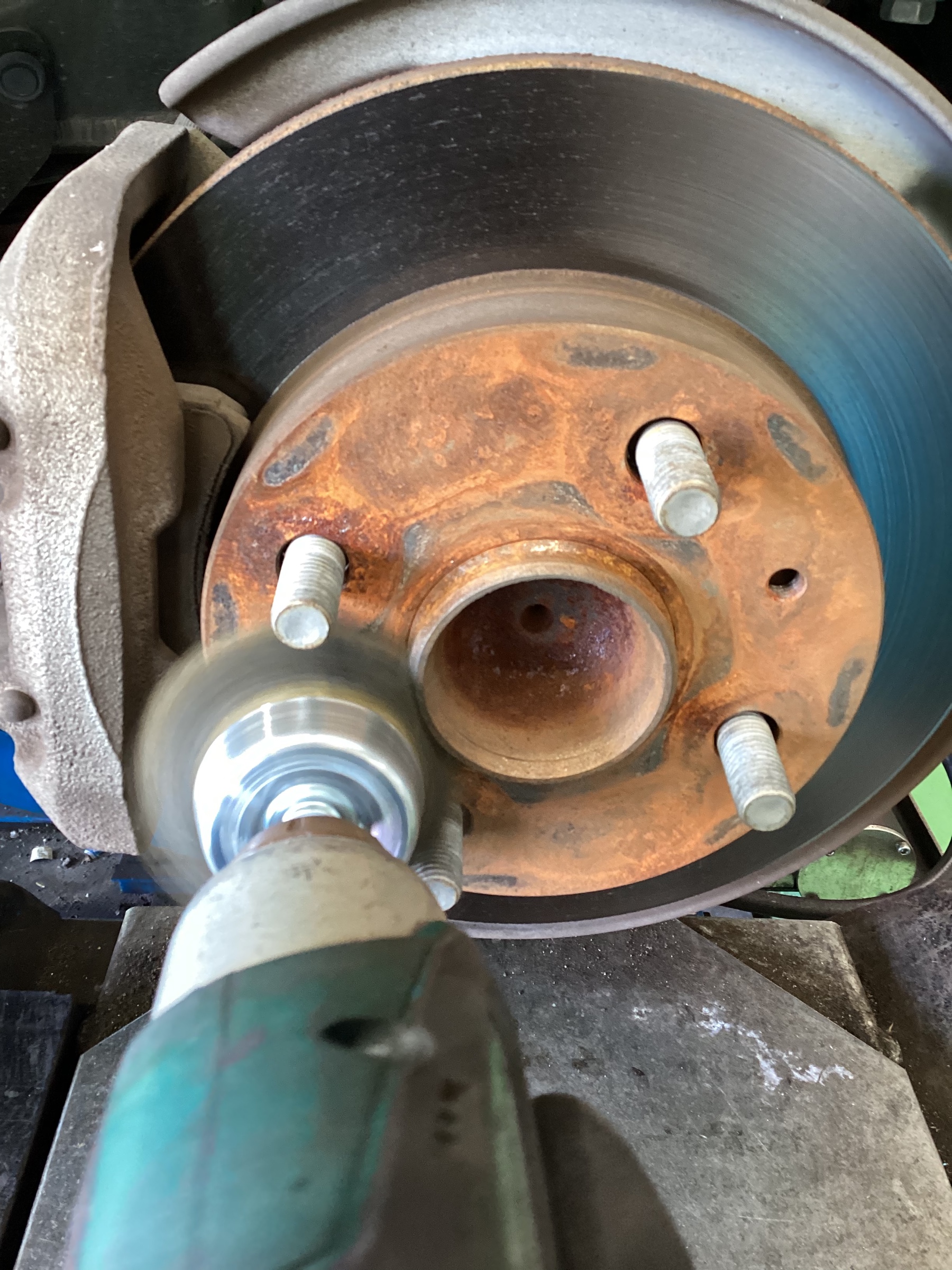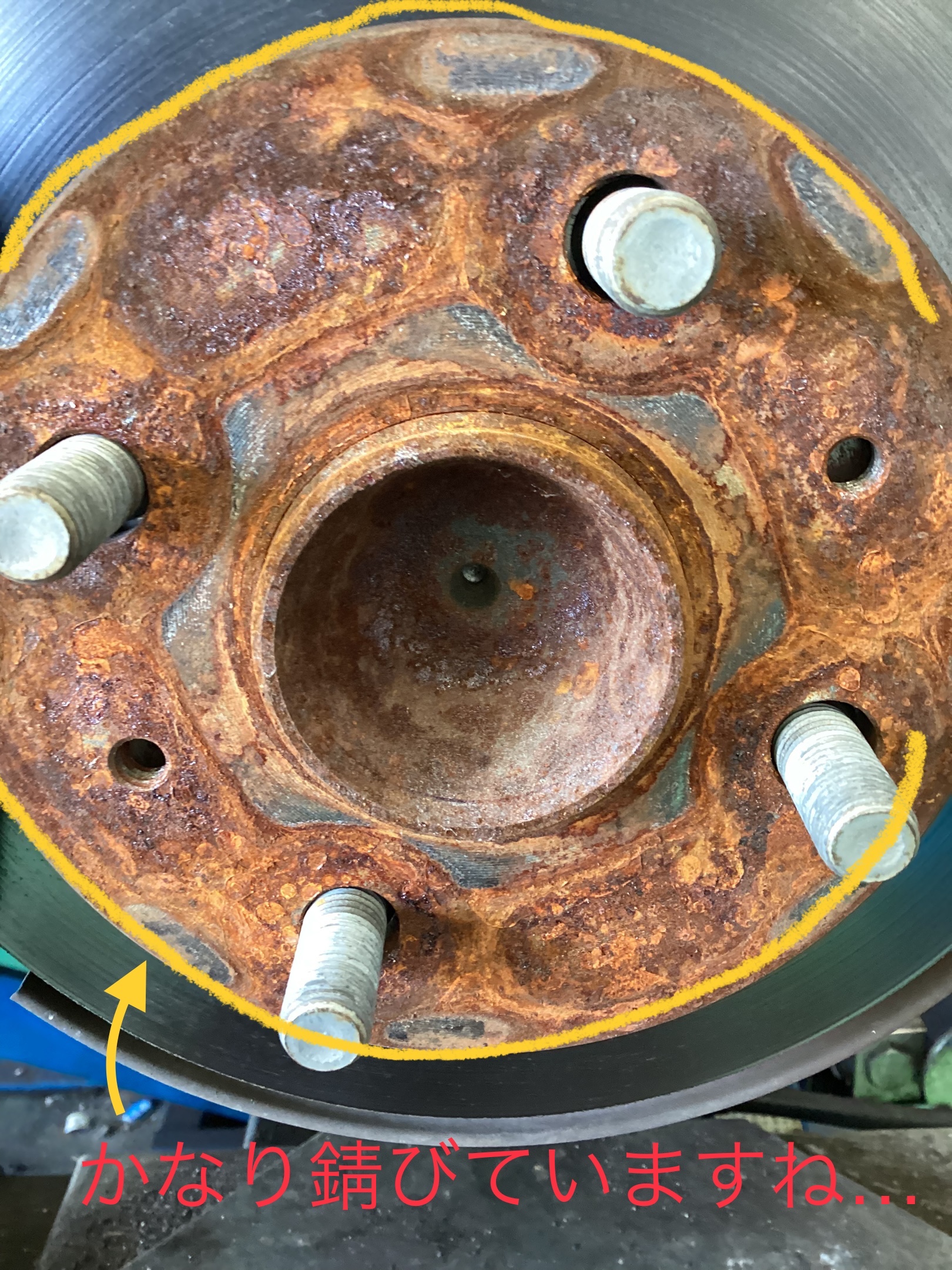下の写真はハブと呼ばれる部分がかなり錆びている状態を映しています。