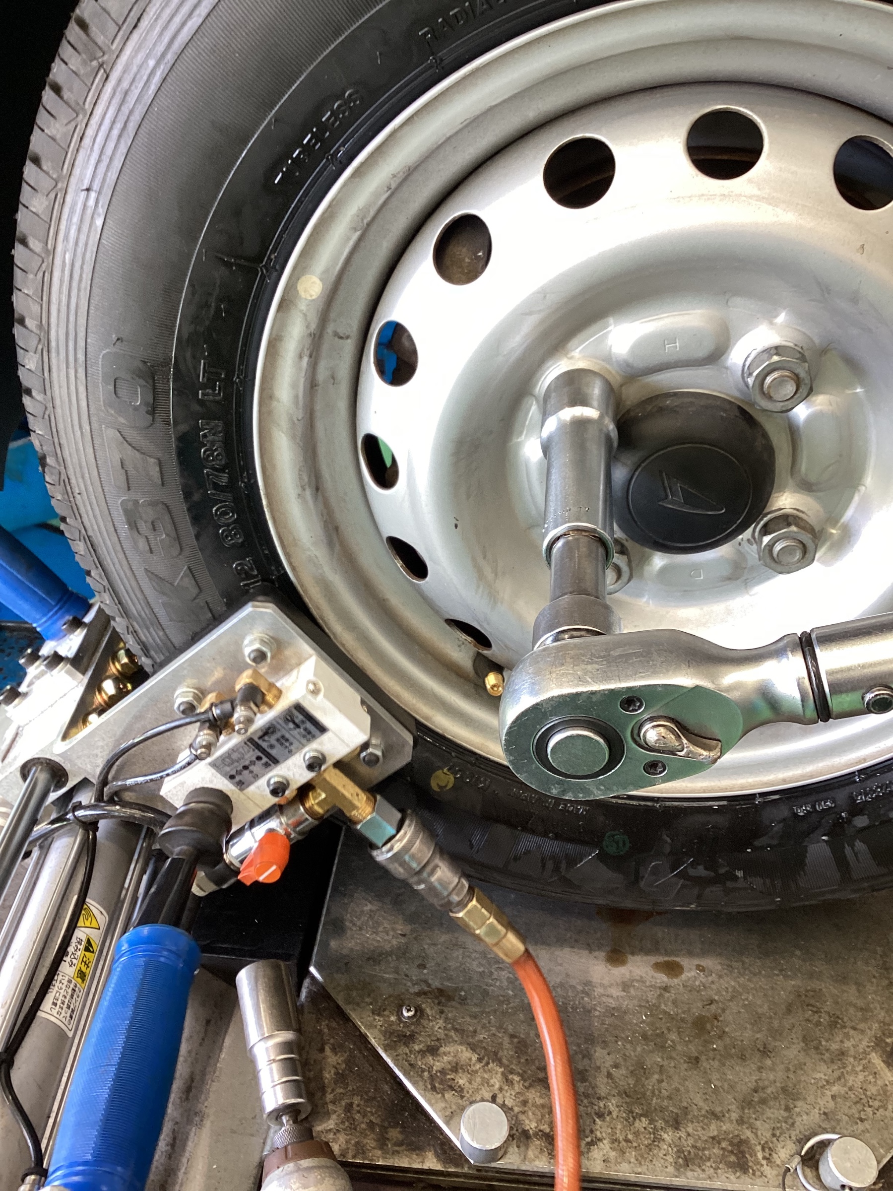 装着後は2人目が確認して正しい力でナットが締まっているかをチェックします。